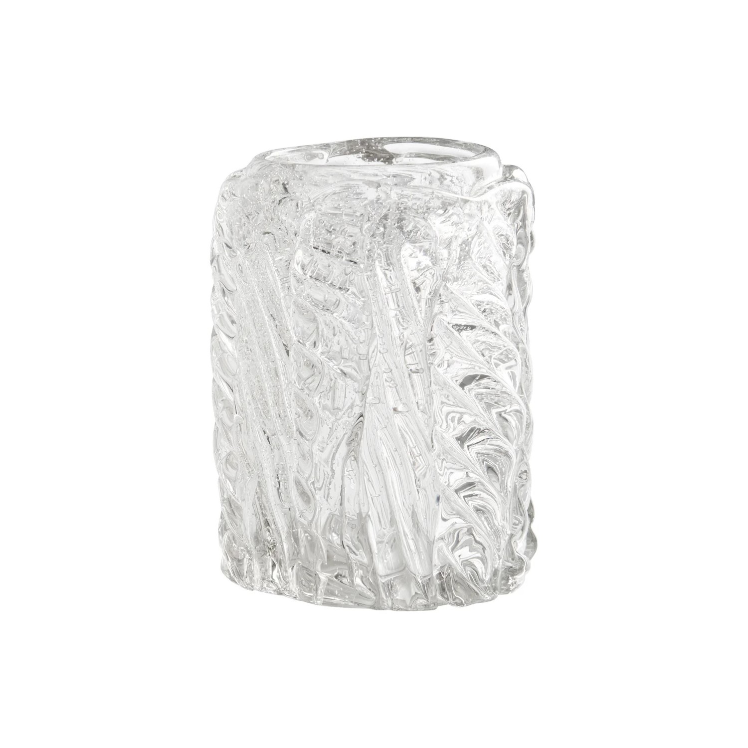 The Clear Vase features sections of three-dimensional diagonal patterning on its exterior that refract light to stunning effect. Both elegant and versatile, this watertight vase has a variety of functions -- whether you use it to hold a bouquet, place a candle inside for a hurricane-like effect, or simply display it on its own to show off its striking craftsmanship.