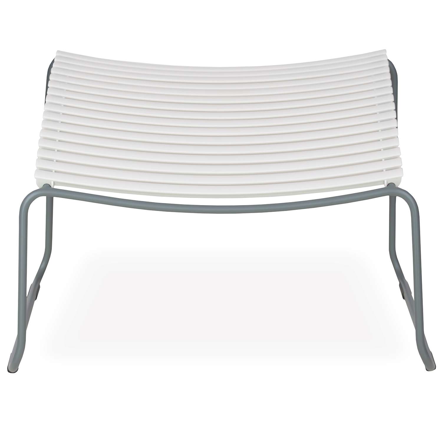 A perfect companion for the Click Lounge Chair, the Click Footrest features a striking, ergonomic form that provides sturdy and stylish cushion-free comfort by the pool, on the patio, or in the living room. Suitable for use indoors and out, Click is made with UV-protected plastic lamellas (slats) in muted white, supported by a grey powder-coated steel frame. The plastic lamellas can be clicked on and off to be replaced or to modify its look, taking Danish modern design to the next level.
