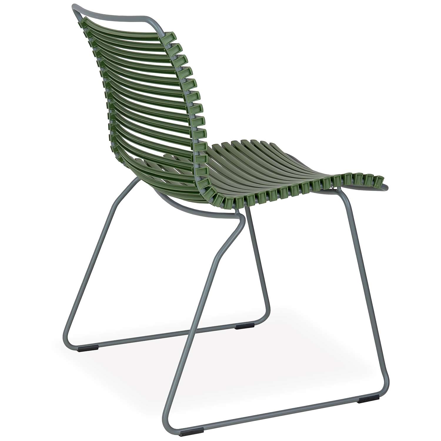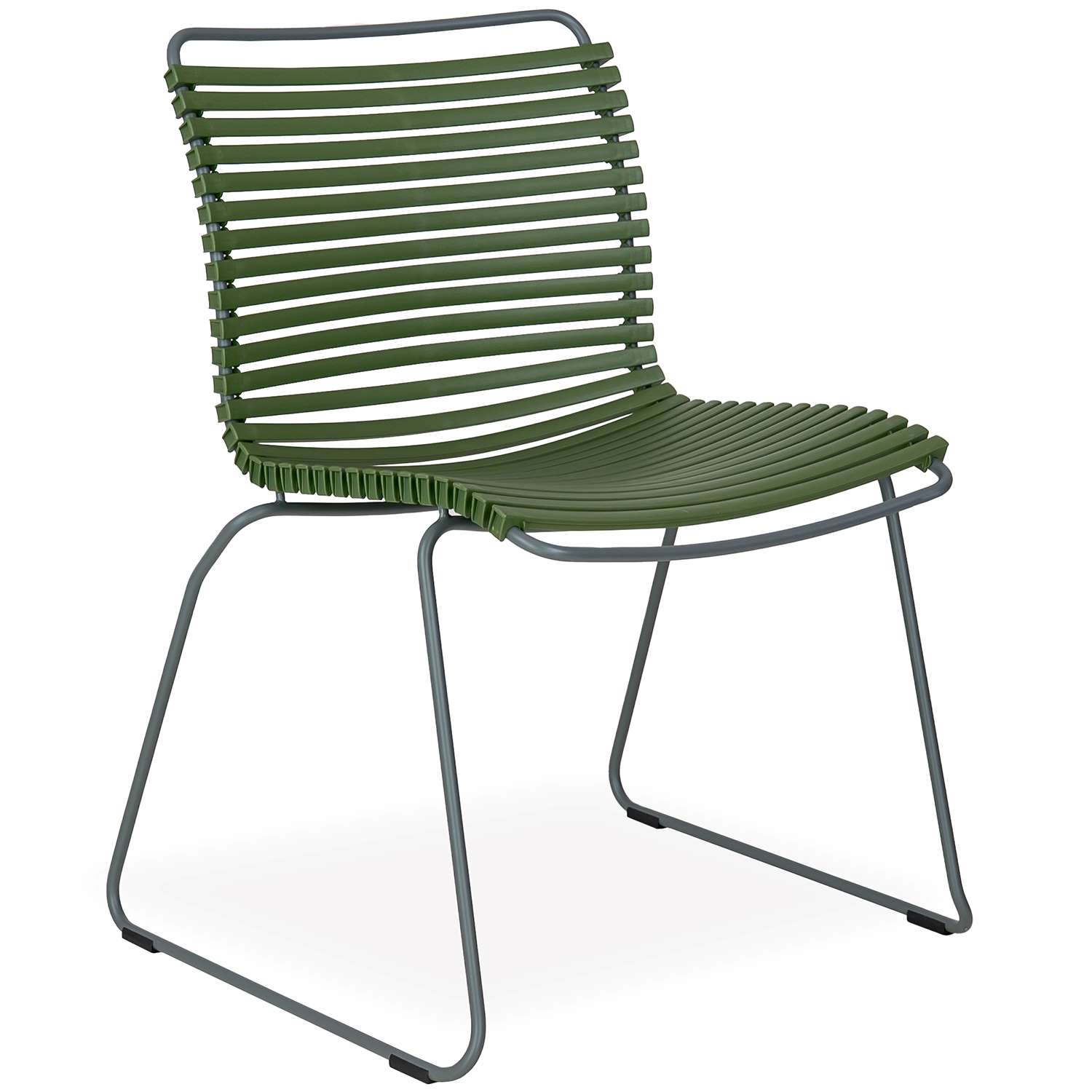 The Click Low Back Dining Chair has a striking, ergonomic design that provides sturdy and stylish cushion-free comfort by the pool or dining table. Suitable for use indoors and out, Click is made with UV-protected plastic lamellas (slats) in chic olive green, supported by a grey powder-coated steel frame. Click's plastic lamellas can be clicked on and off to be replaced or to modify its look, taking Danish modern design to the next level.