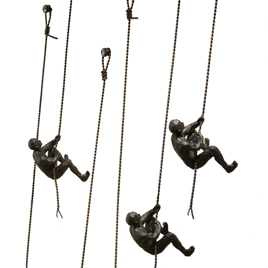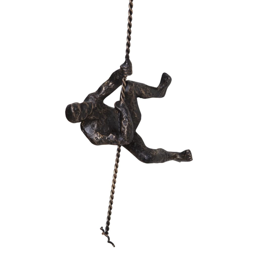 Industrial yet chic, the Climbing Man wall-mounted sculpture is made from bronze cast iron and depicts figures in various stages of climbing a braided rope, representing everyday triumphs and the rewards of hard work. This inspiring piece must be mounted to the wall and cannot stand on its own.