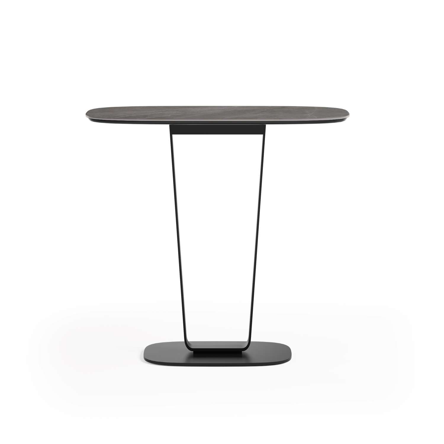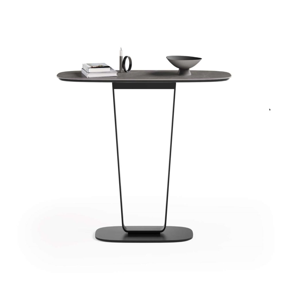 [0] => The Cloud 9 Console Table by BDI has a sleek design and a top in a versatile Alto Grey color with accents of elegant white veining. The tabletop is made from durable Italian porcelain, while the support and weighted base are made from black powder-coated steel. Cloud 9 can stand in a living room, hallway, or office as a multifunctional table, or be paired with other items in the Cloud 9 collection for a coordinated look.