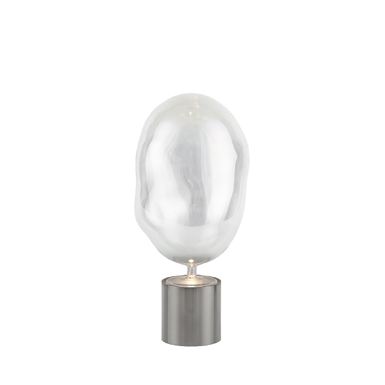 [0] => cloud table lamp with satin nickel base/ free form glass globe iride glass finish. design: oriano favaretto.
