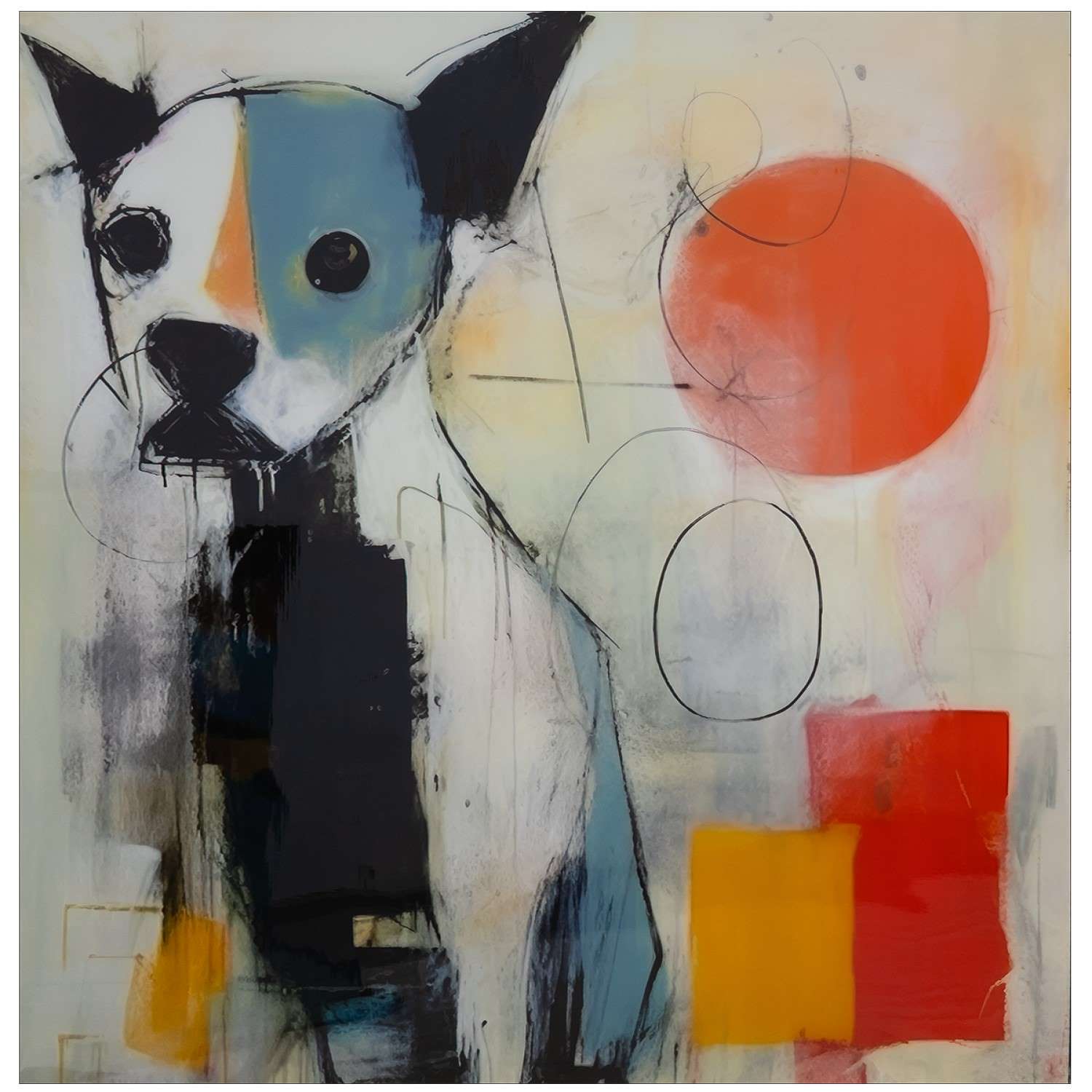 [0] => Color Block Dog II makes use of loosely drawn lines and primary colors to depict a dog posed against an off-white background. Dark shading over the body of the dog creates a strong sense of contrast, while colorful shapes in red and yellow add an air of playfulness. Available with a glossy finish, Color Block Dog II is the perfect interior accent for lovers of animals and art.