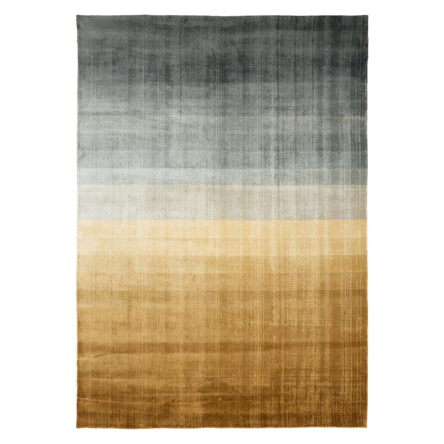 [0] => The Combination Rug features a striking ombre design in grey and golden yellow, with banded sections that lighten in color toward the center and become more saturated at the ends. Designed by Hanne Kortegaard, this rug is hand-loomed in India from viscose with a soft feel and subtle shine. With its playful pattern that contrasts warm and neutral tones, the Combination Rug will liven up any floor.