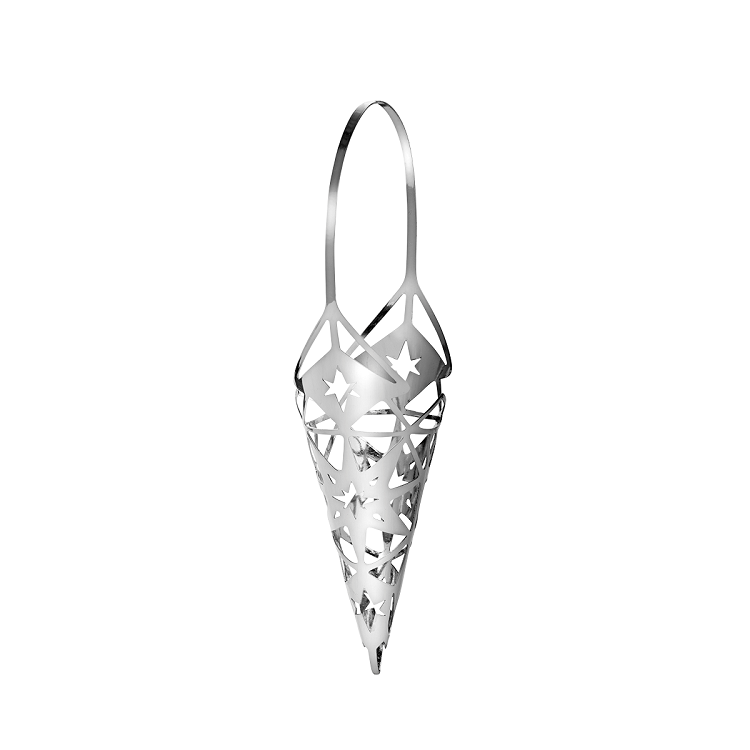 The Cone hanger - in gleaming silver-plated steel - features intricate and timeless star cutouts inspired by a Danish contemporary 'fairy-tale' Christmas. The hanger looks beautiful when hung as a tree ornament or in a window filled with fresh twigs from your Christmas tree! Classic Danish style and quality.