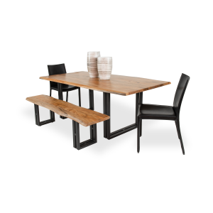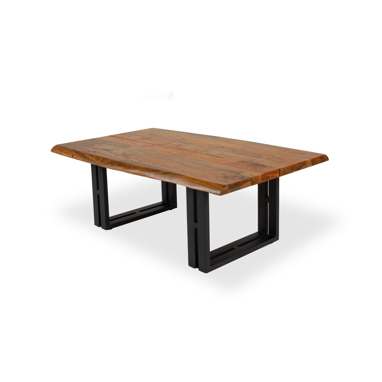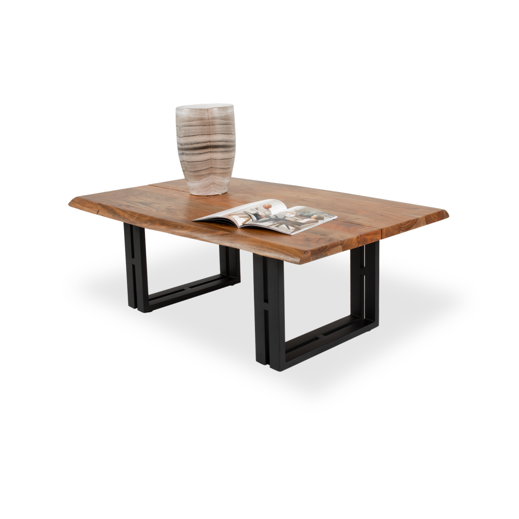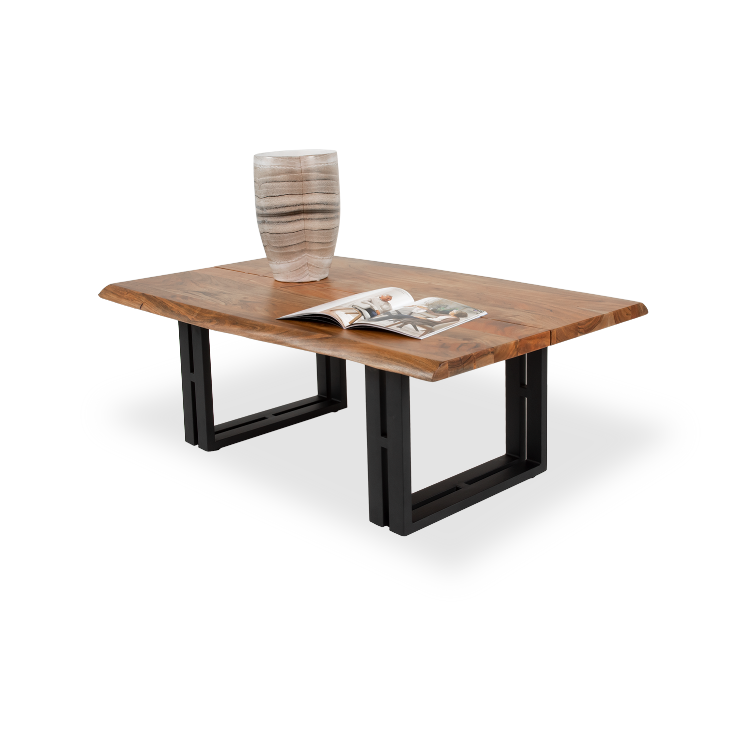 [0] => The Copenhagen Coffee Table perfectly balances modern and natural design, with an acacia top and raw double steel lark legs. The live edge top has wooden strip accents across the middle, both to provide stability and to highlight the formed-by-nature character of the table.