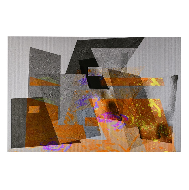 [0] => Copper Angels wall art brings colorful, abstract, geometric art to your wall space with its bright orchid, yellow, and orange accents.