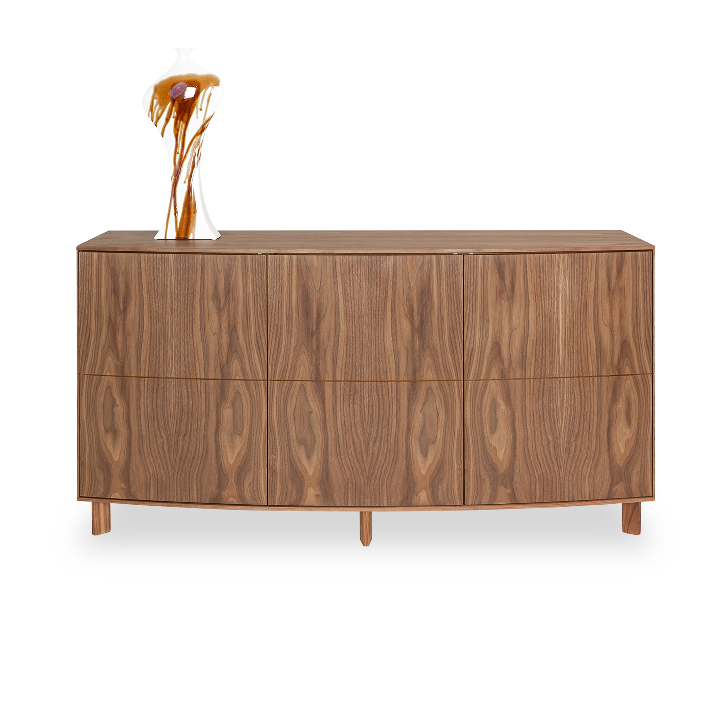 [0] => curve sideboard walnut oil, 3 door/1 drw, 58.7x16x31.5"