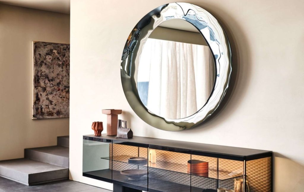 [0] => The Dare to Dream mirror features sharp, bold angles and shapes that give the mirror three dimensionality and a kaleidoscopic effect. The Dare to Dream mirror is a piece of art that will bring an extra element of design and style to entry spaces, living, dining, and bedroom areas.
