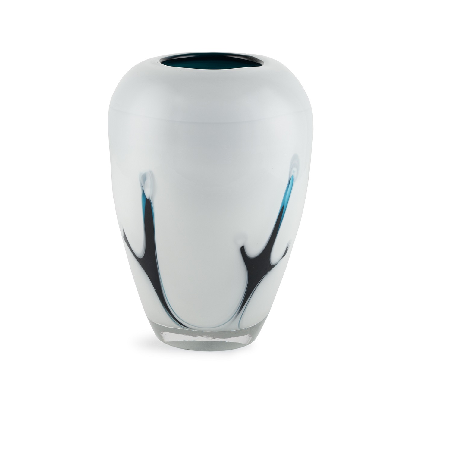 The Deep Sky vase will enhance your home with a perfect pop of color with its chic white and blue features. Perfect to complete any office or living space.
