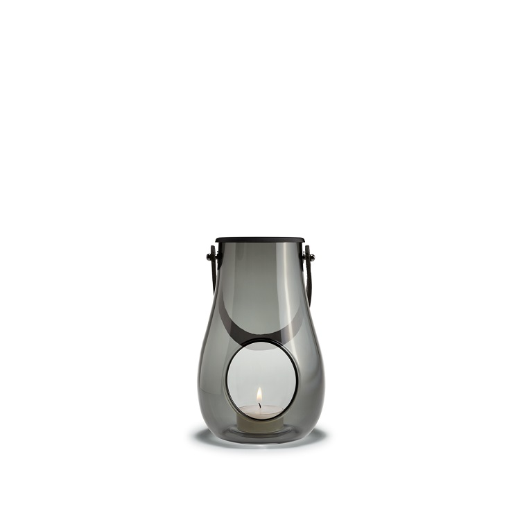 [0] => The Design with Light lantern casts warm, dynamic light on its surroundings and can be placed truly anywhere - on your table as part of your holiday setting, on the ground on a warm summer evening, or on a nearby table to bring warmth and coziness to a dark winter night. With its glass body and full-grain leather strap, the lantern has a clean, Scandinavian look and can be used all-year around. The lantern can be placed indoors or outdoors, though it should be stored indoors to protect the leather handle. The lantern's round opening is hand-shaped by Holmegaard of Denmark's expert craftsmen.