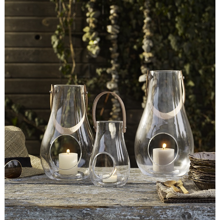 [0] => The Design with Light lantern casts warm, dynamic light on its surroundings and can be placed truly anywhere - on your table as part of your holiday setting, on the ground on a warm summer evening, or on a nearby table to bring warmth and coziness to a dark winter night. With its glass body and full-grain leather strap, the lantern has a clean, Scandinavian look and can be used all-year around. The lantern can be placed indoors or outdoors, though it should be stored indoors to protect the leather handle. The lantern's round opening is hand-shaped by Holmegaard of Denmark's expert craftsmen.