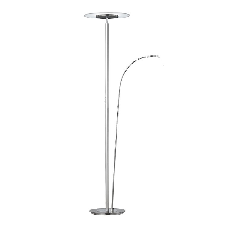 The Dixon double floor lamp, available in chrome, brings you the best of both worlds in terms of lighting with a bright torchiere lamp and task light. The torchiere lamp can be angled from side to side to direct light where you need it, and the integrated LEDs have a color temperature of 3000K.