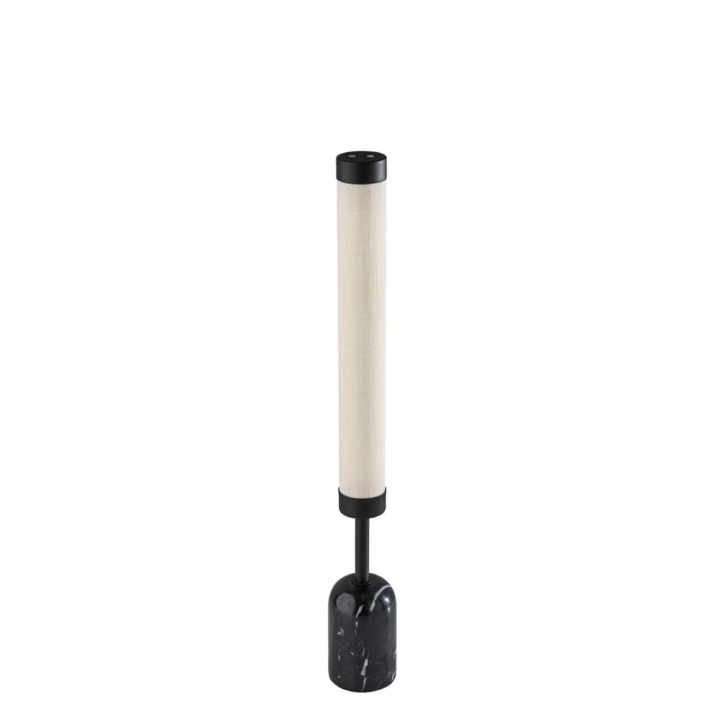 The Dorsey LED Table Lamp is thoroughly contemporary with its ultra-thin profile and 12W integrated LED light. This lamp features a white textured fabric shade, a black metal frame, and an elegant black marble base with white veining. A convenient touch switch on top of the shade lets you cycle between 3 brightness settings. Dorsey is ideal for bringing light to a minimalist home or any smaller space.
