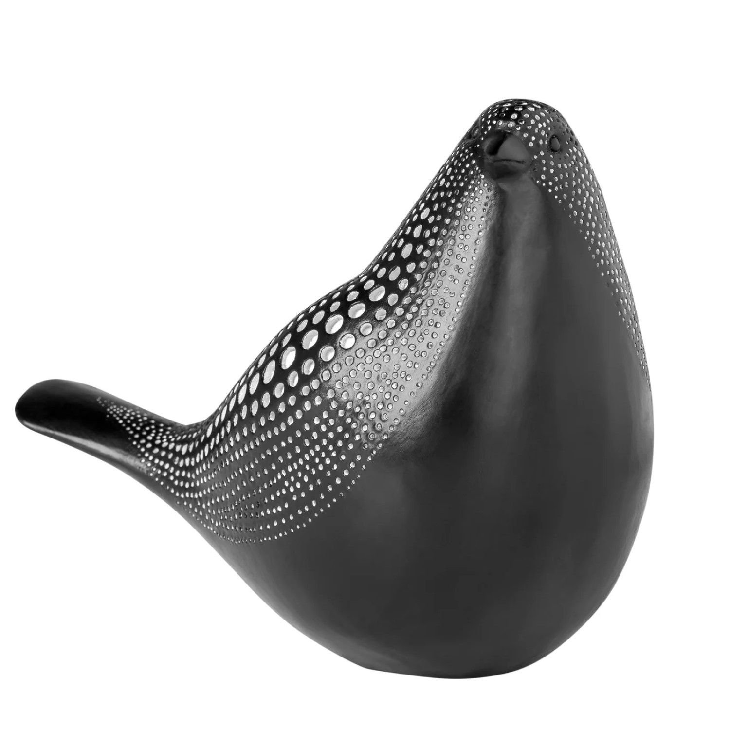 The Dotted Sitting Bird, shown in black, is a charming figure crafted from resin and embellished with a unique painted and debossed dot pattern in white. A rotund form and slightly cocked head give this bird a sense of lovable whimsy. Place this figurine on its own or with other accessories to add a touch of nature to your sideboard, bookshelf, or desk.