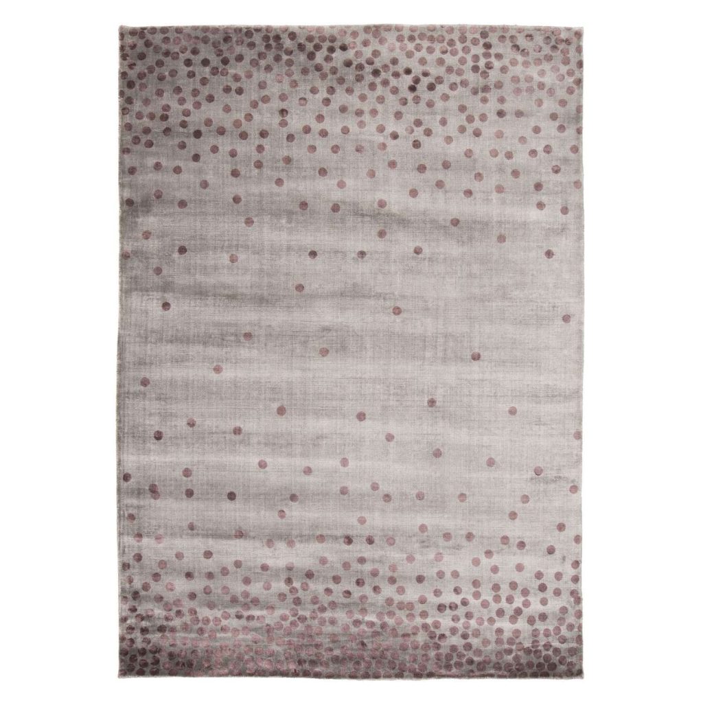 [0] => The Dotto rug, designed in Denmark and handloomed from viscose, features a playful dot motif underlaid with a creamy bordeaux and grey color scheme. The Dotto infuses your space with subtle color and can also bring out and accentuate similar colors in its design environment.