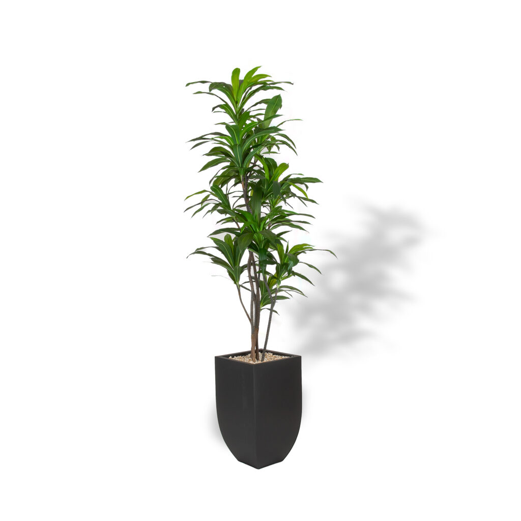 [0] => The Dracaena artificial plant brings a sense of nature and vivacity to your living room, bedroom, or office space. Housed in a sculptural black planter with decorative rocks, this plant is green, modern, and lively.
