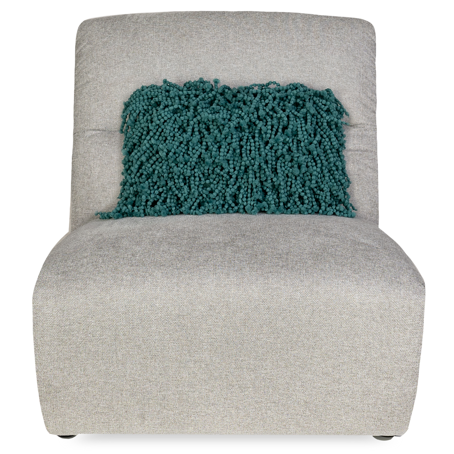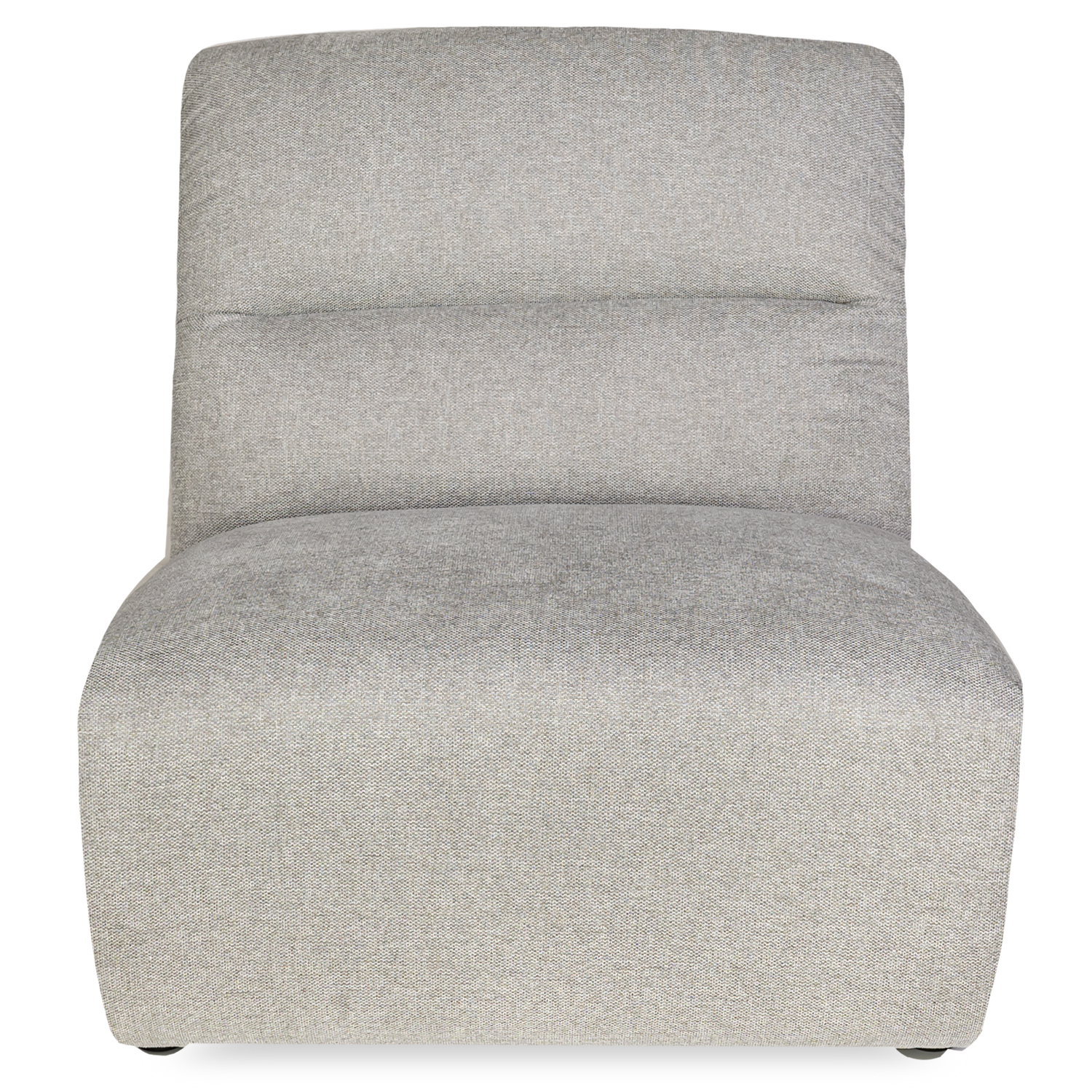 [0] => The Dutton Armless Chair features a plush, modern look optimized for comfort with its soft lines and silver grey Belfast fabric upholstery. Woven from a blend of polyester and acrylic, Belfast fabric is built to resist water- and oil-based stains, as well as everyday wear and tear, so you can relax with peace of mind. Featuring a wide, cushioned seat that extends to the ground and an angled backrest with horizontal stitching, this ample and cozy chair invites you to lean back and unwind. Use the Dutton chair on its own or mix and match with other pieces in the Dutton collection to form a customized, modular sectional.