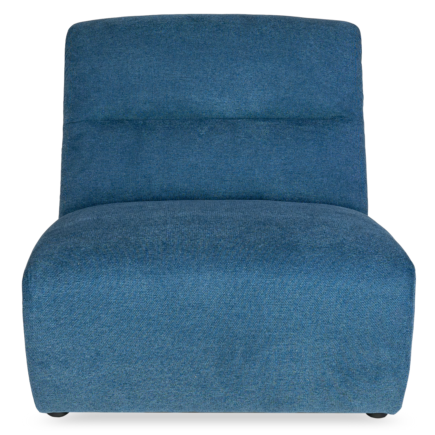 The Dutton Armless Chair features a plush, modern look optimized for comfort with its soft lines and blue Belfast fabric upholstery. Woven from a blend of polyester and acrylic, Belfast fabric is built to resist water- and oil-based stains, as well as everyday wear and tear, so you can relax with peace of mind. Featuring a wide, cushioned seat that extends to the ground and an angled backrest with horizontal stitching, this ample and cozy chair invites you to lean back and unwind. Use the Dutton chair on its own or mix and match with other pieces in the Dutton collection to form a customized, modular sectional.
