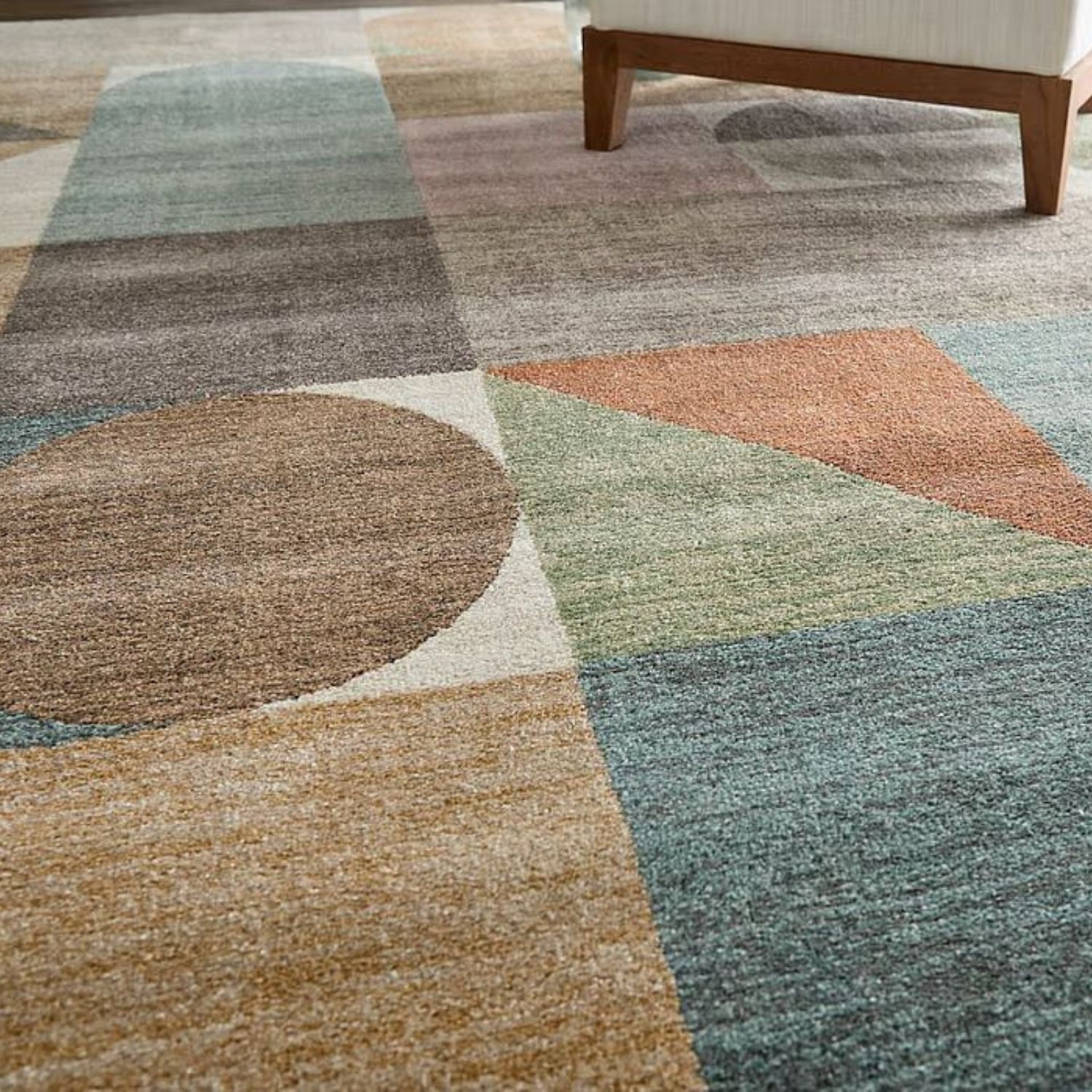 [0] => Evoking modern art, the Eden Rug boasts a fun geometric pattern in muted shades of red, blue, green, pink, brown, and grey. Eden's variegated color scheme adds personality to any space and is especially suitable for eclectic and contemporary interiors. Power-loomed in Turkey from polypropylene, Eden has excellent durability that makes it kid-friendly and ideal for high-traffic areas.