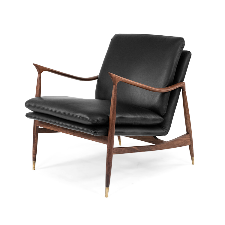 [0] => The Edge chair showcases the finest in timeless Danish design and workmanship. Edge, designed by Stig Christensen, radiates sophistication and comfort with its light, beautiful oil walnut frame and black aniline Sevilla leather upholstery. Edge is inspired by Danish chair designs from the 1940s and, with its brass foot studs, feels both retro and undeniably contemporary.