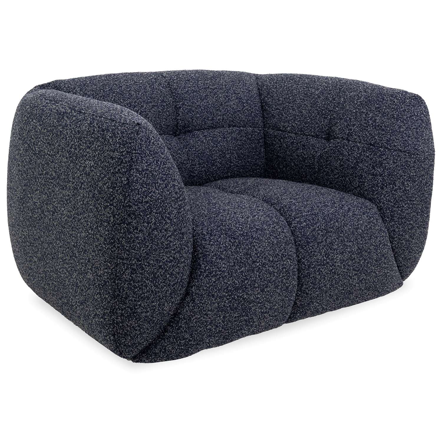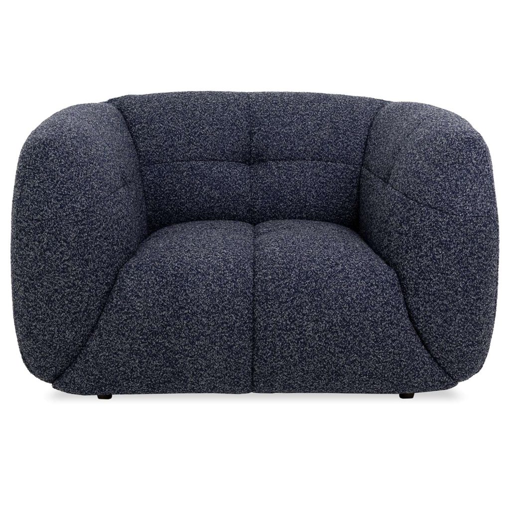 Bring a pop of fun to your living room with the Eliana Chair, upholstered in textured boucle fabric with variegated threads in indigo and grey. Eliana features a soft, rounded profile with tufted accent stitching for a fashionable look. The high armrests create a cozy, enveloping feel, while the extra-wide seat can fit up to two people, or give one person plenty of room to stretch out and lounge. Built with no-sag spring support that results in soft, buoyant cushioning, Eliana gives you superior comfort with unique style at an amazing price.