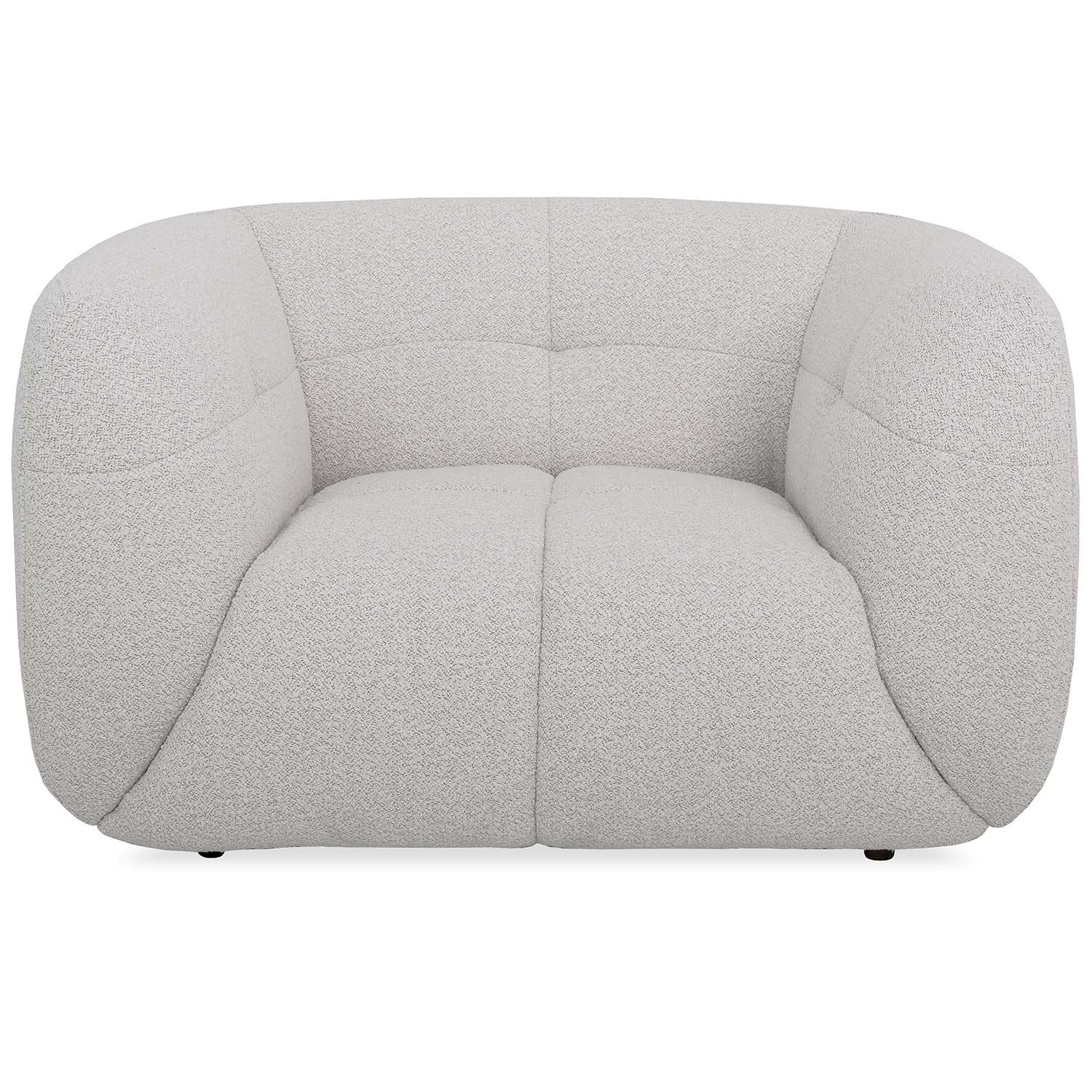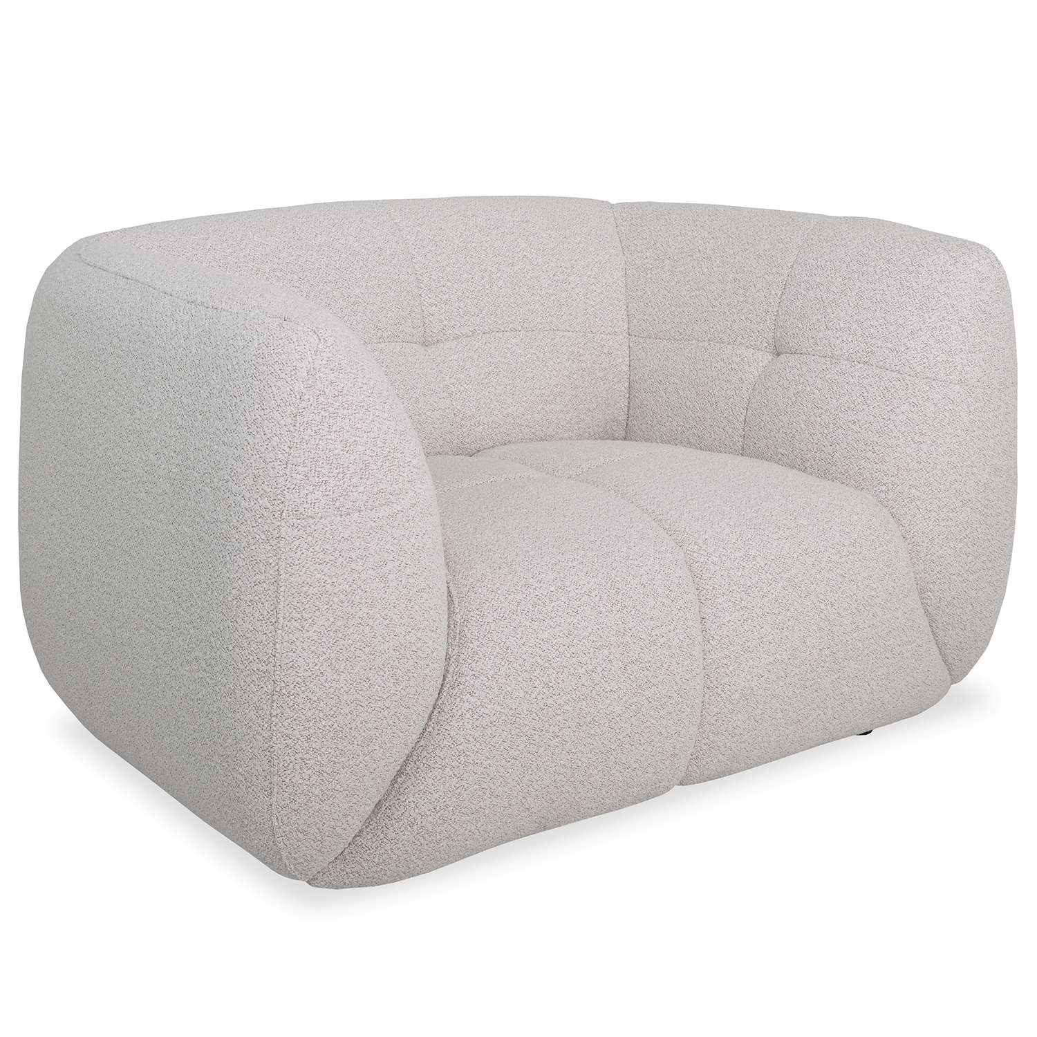 Bring a pop of fun to your living room with the Eliana Chair, upholstered in textured boucle fabric with variegated threads in cream and beige. Eliana features a soft, rounded profile with tufted accent stitching for a fashionable look. The high armrests create a cozy, enveloping feel, while the extra-wide seat can fit up to two people, or give one person plenty of room to stretch out and lounge. Built with no-sag spring support that results in soft, buoyant cushioning, Eliana gives you superior comfort with unique style at an amazing price.