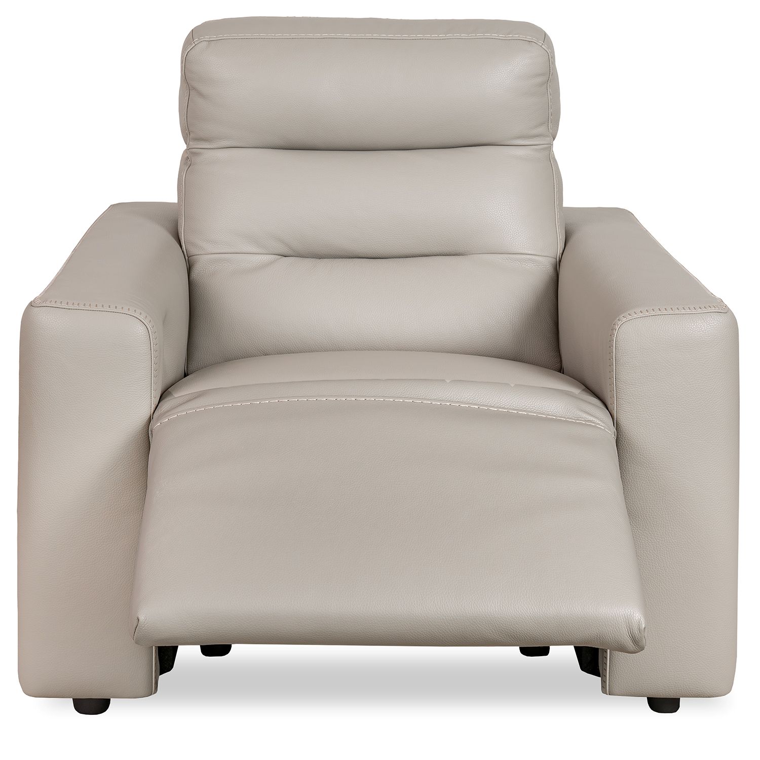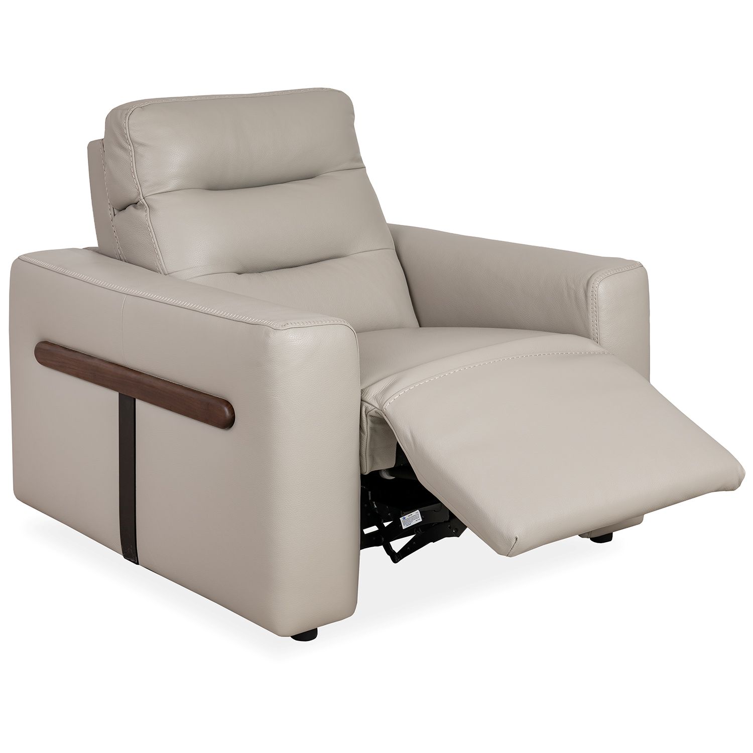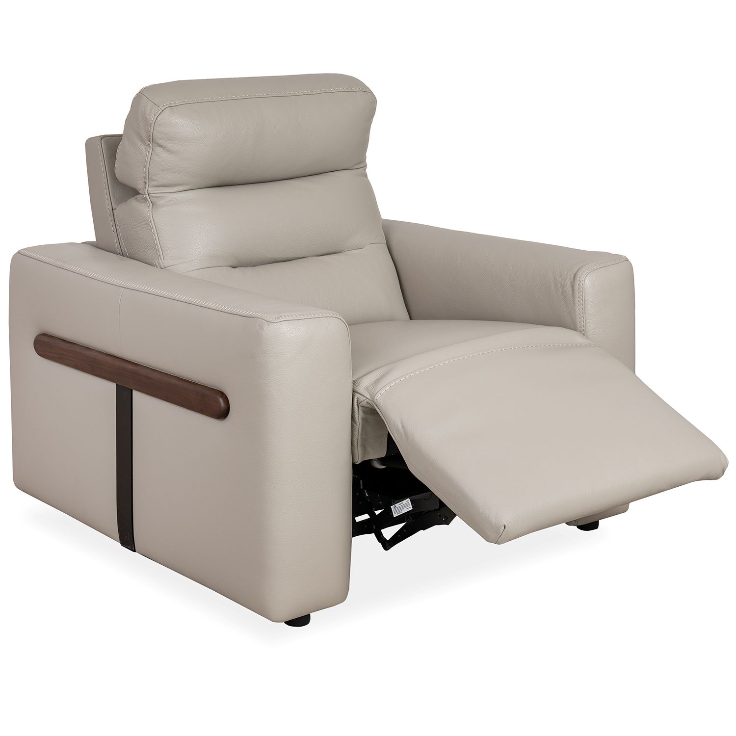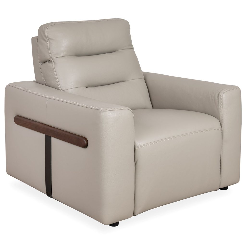 Made in Italy, the Elio Power Chair features taupe grey leather upholstery and a high, pillowed backrest. Elio's retro-inspired look is enhanced by blanket stitched seams on the armrests and T-shaped accents on the sides in walnut and matte black. Power motion controls and a USB charging port offer you customized comfort and convenience.