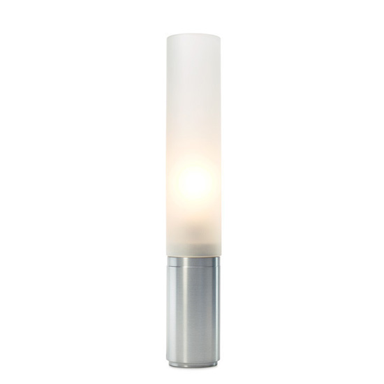 [0] => The Elise Table Lamp has an understated look and a streamlined design, with a silver aluminum base, a frosted acrylic diffuser, and a cylindrical silhouette. The full-range in-line rotary dimmer allows you to adjust the light to your preferred level, while the frosted diffuser ensures a soft, more evenly distributed glow. Elise has a 6' cord and requires one white E26 base 40W T10 frosted tubular bulb, included with purchase.