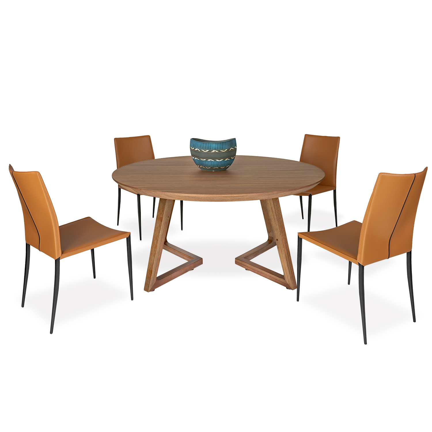 [description] => Oliana Dining Table 59" Round - Walnut W/ Brushed Stainless Steel Base