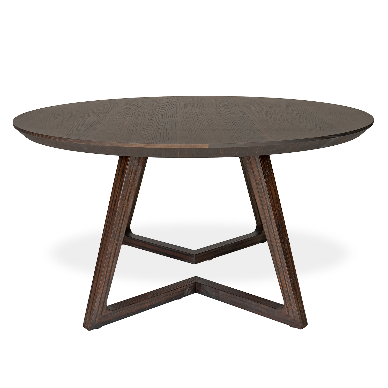 Part of Copenhagen's Essentials collection, the Ella Dining Table features a classic look with a contemporary twist. Available with a smoked oak finish, Ella has a round tabletop supported by legs joined together in two triangular formations that provide extra stability. This table's clean silhouette and distinctive design makes it ideal for interiors that are both minimalist and modern.