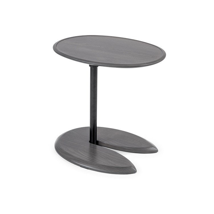 [0] => The Ellipse Table, available in grey, features a height-adjustable tabletop with a slightly raised edge that matches the subtle tapering of the leaf-like base. Rounded curves add to the appealing shape of the base, giving this minimalist table an elegant flair.