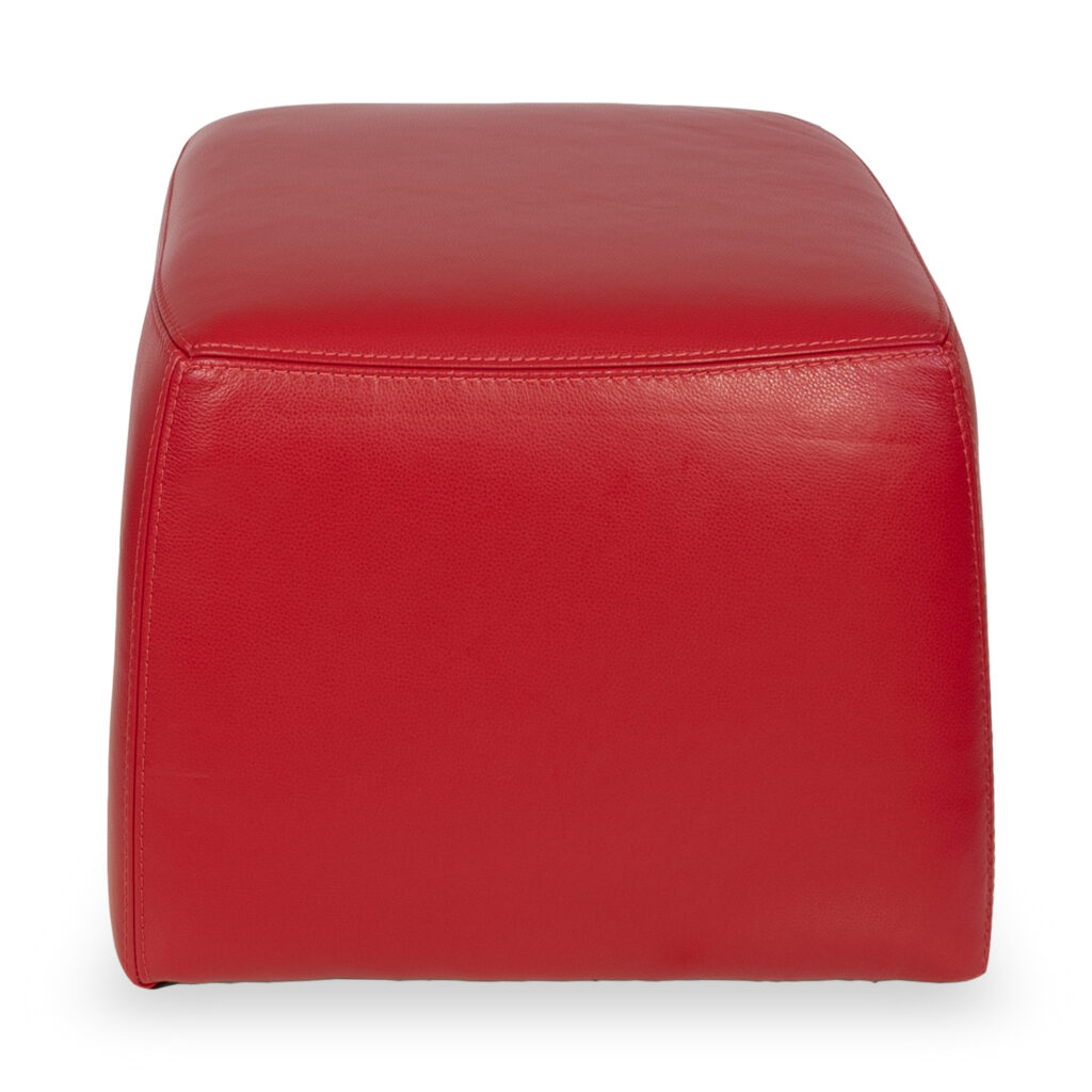 The Elly Ottoman features New Club leather upholstery in pure red and a classic square shape that tapers slightly toward the top. Great paired with an armchair for a place to rest your feet, or standing on its own for casual seating in a pinch, Elly's minimalist design and bold color will accentuate a wide range of design environments.