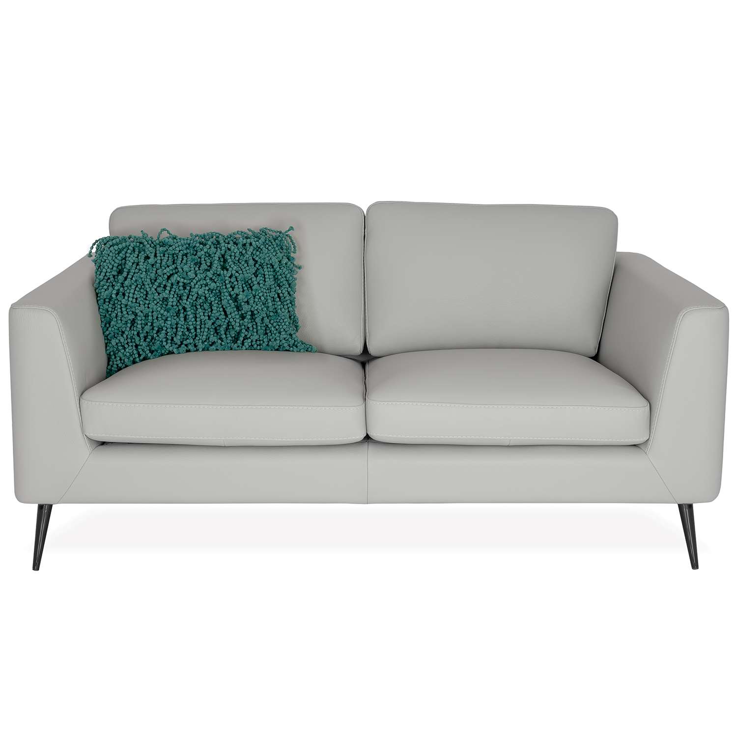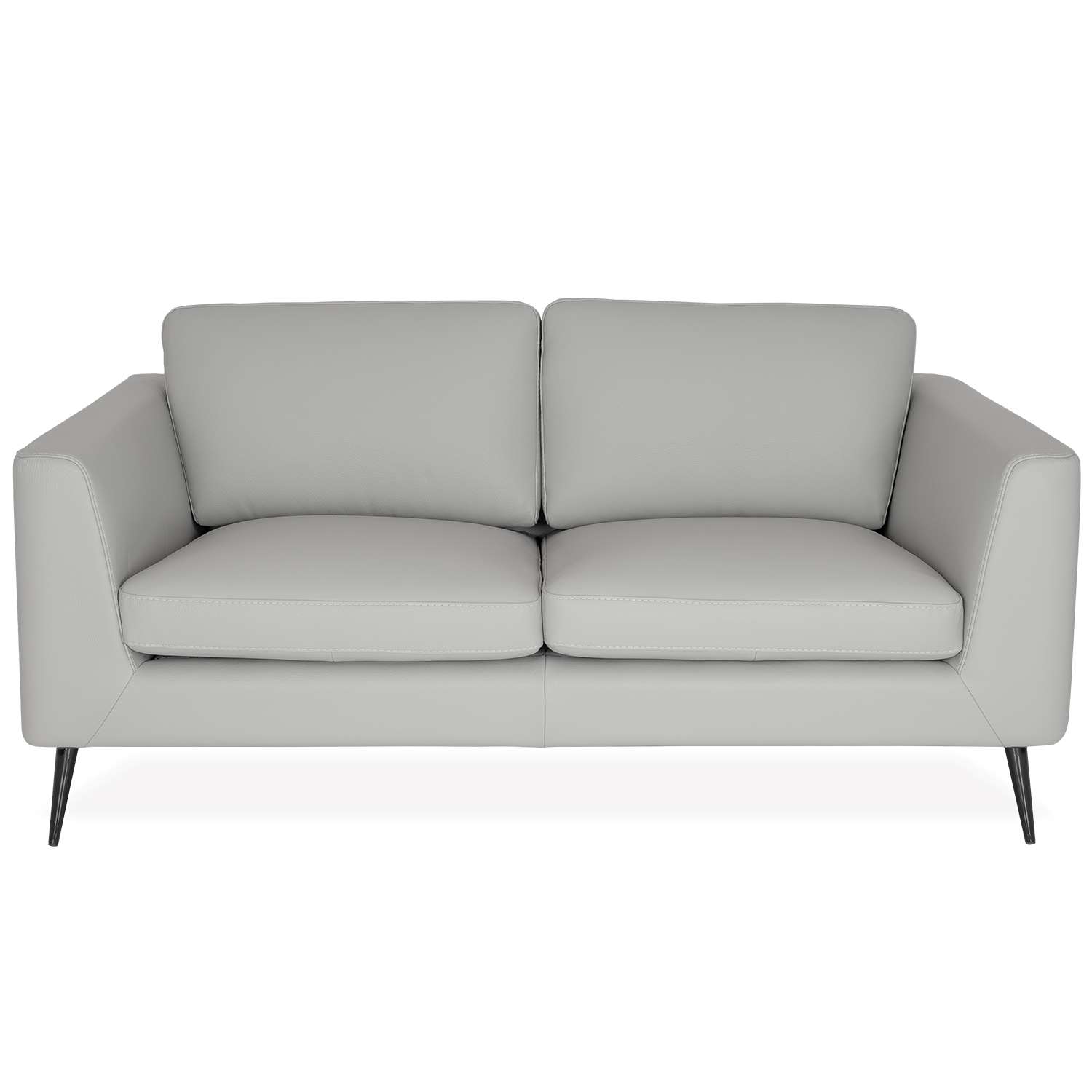 Made in Italy, the Emilio Loveseat has a clean, contemporary look with wide seats and subtly angled armrests. Emilio's light grey leather has a smooth feel heightened by detailed matching stitching, with vertical seams down the sides providing an elegant accent. The supportive back cushions can be attached to the sofa via discreet zippers or left unattached depending on your comfort preference. Slim metal legs taper outward toward the ground and feature a smoked finish that can appear grey or bronze in different lights, adding unique depth. Emilio's classic, understated design and neutral tone will effortlessly complement a variety of design environments.
