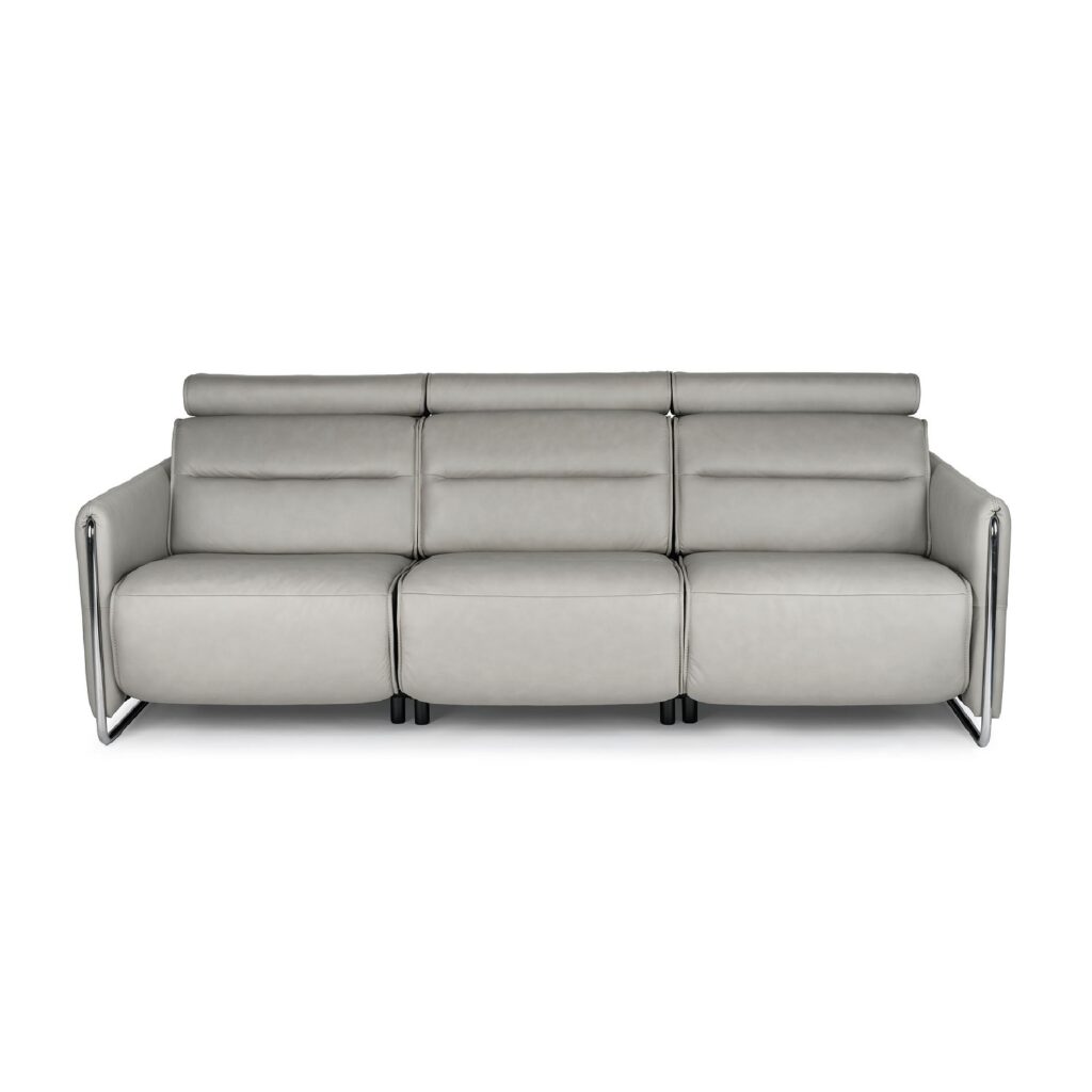 [0] => emily 3 seat sofa - 3 power seats 9410 paloma silver grey with 40 chrome trim and legs