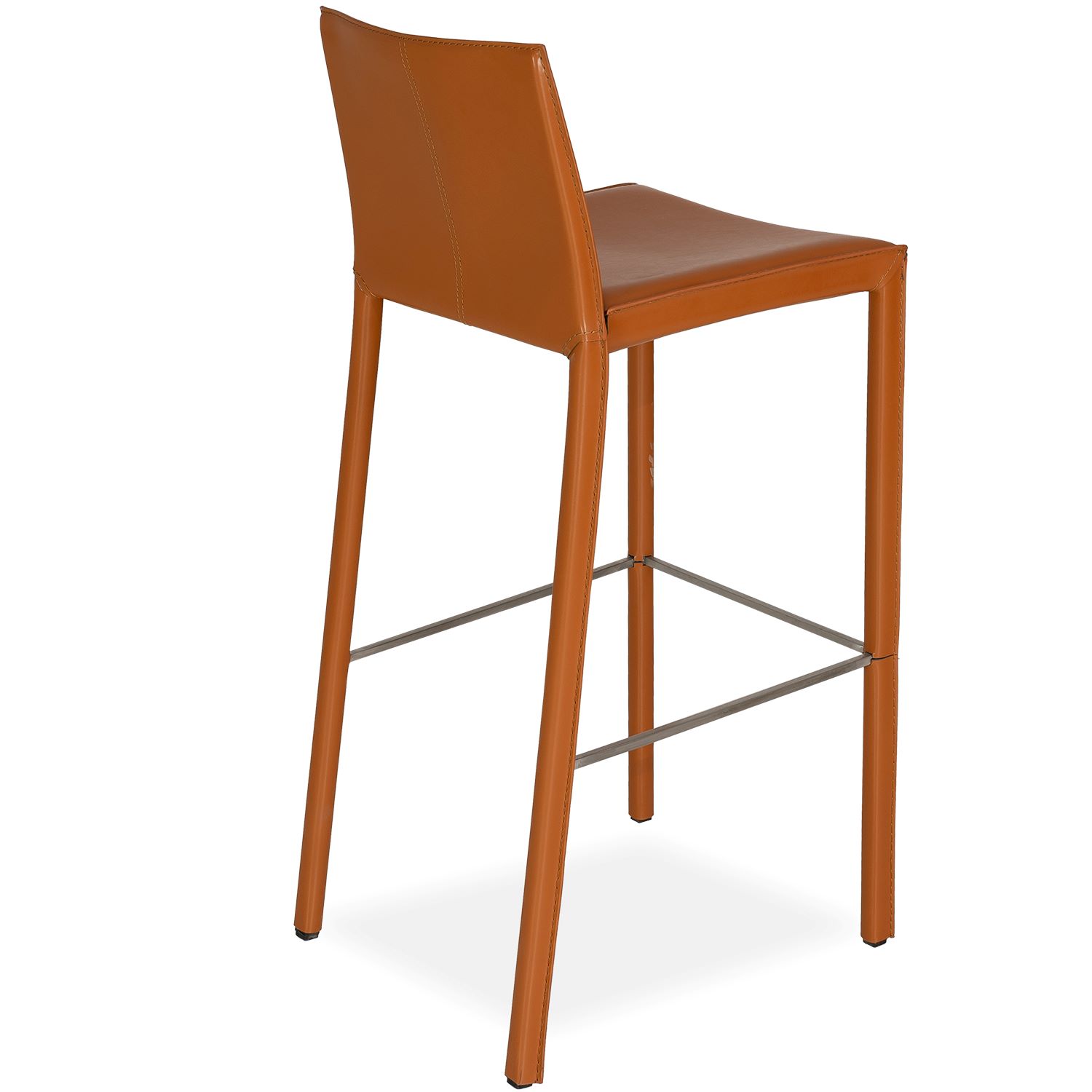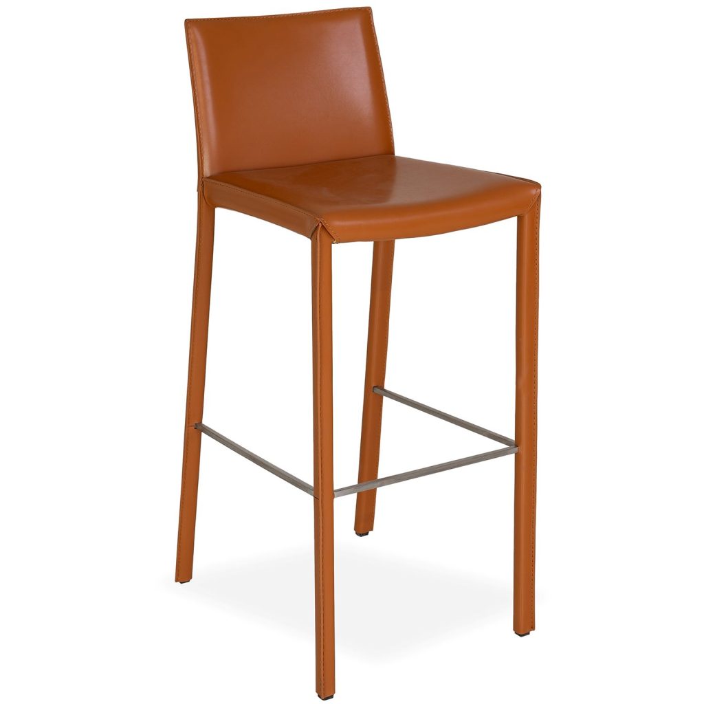 [0] => The Emma Barstool comes in sleek Ecocuoio bonded cognac leather that brings style to any living space. The seat, legs, and back of the barstool are fully upholstered and distinctive seams add a tailored look. Coupled with the smooth, attractive stitching on the back and the stainless steel foot rung, this stool brings a sense of structure to your bar-height table or countertop.