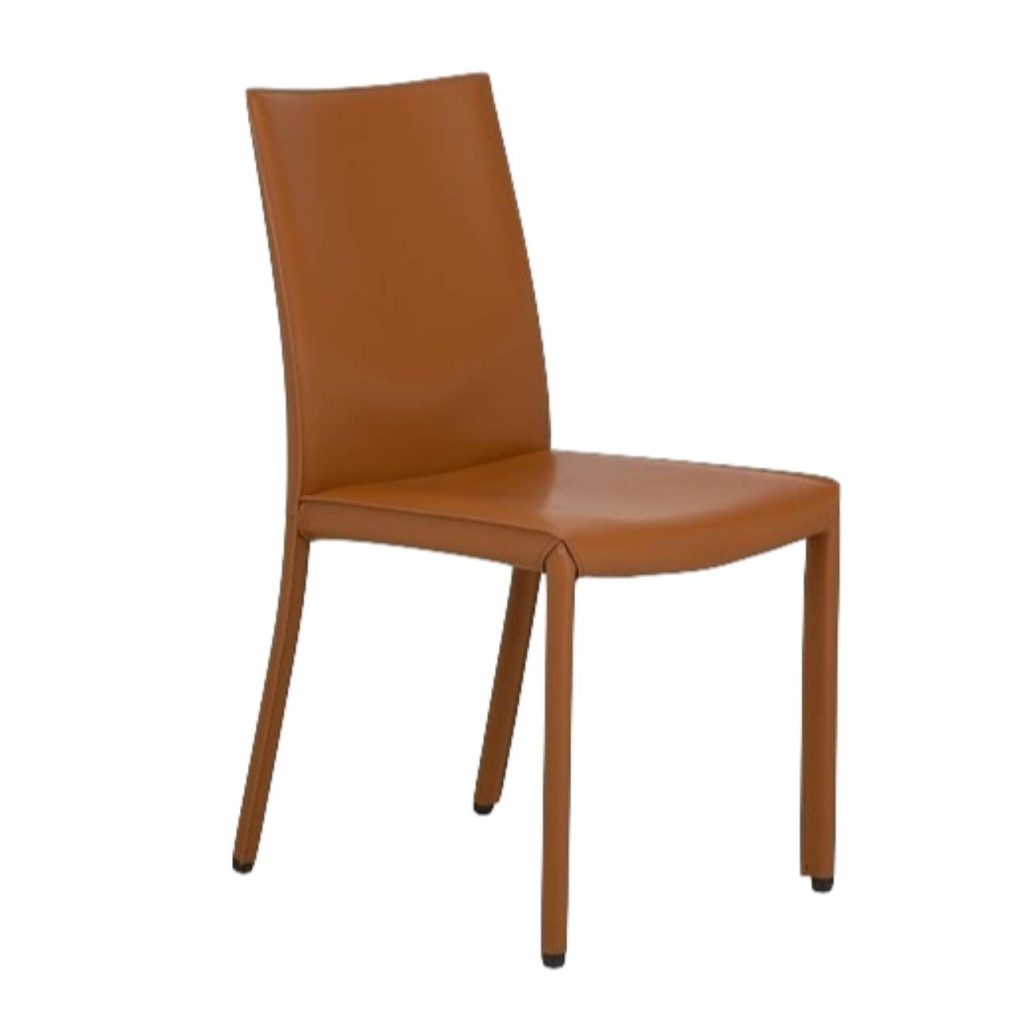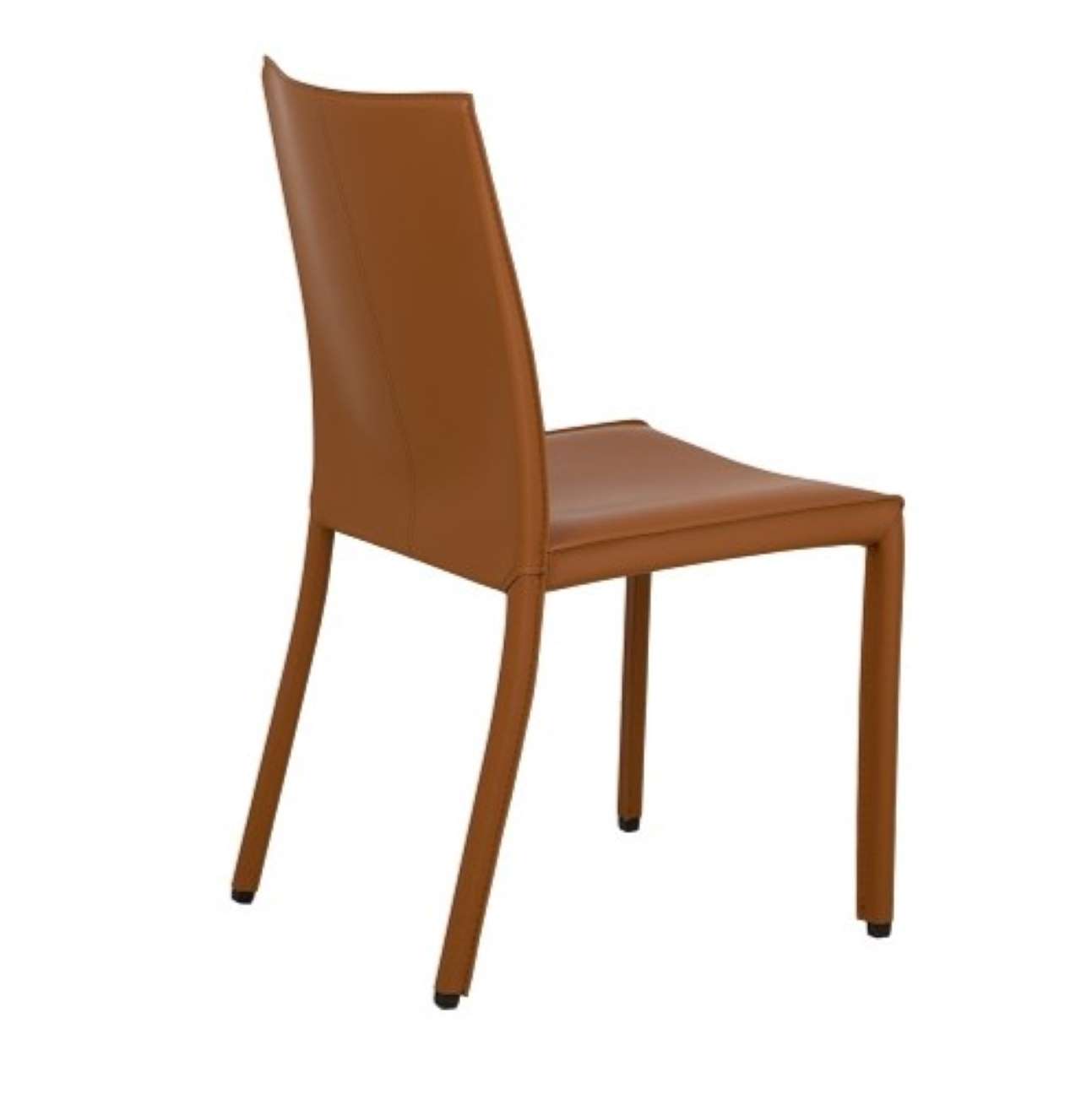 The Emma Dining Chair features cognac bonded leather upholstery that brings warmth to any dining space. Emma's seat, backrest, and legs are fully upholstered for a sleek, unified impression, while distinctive seams and accent stitching add a tailored look. With a lightly curved back that follows the natural shape of your body, the Emma chair will add structure and comfort to your dining setup.