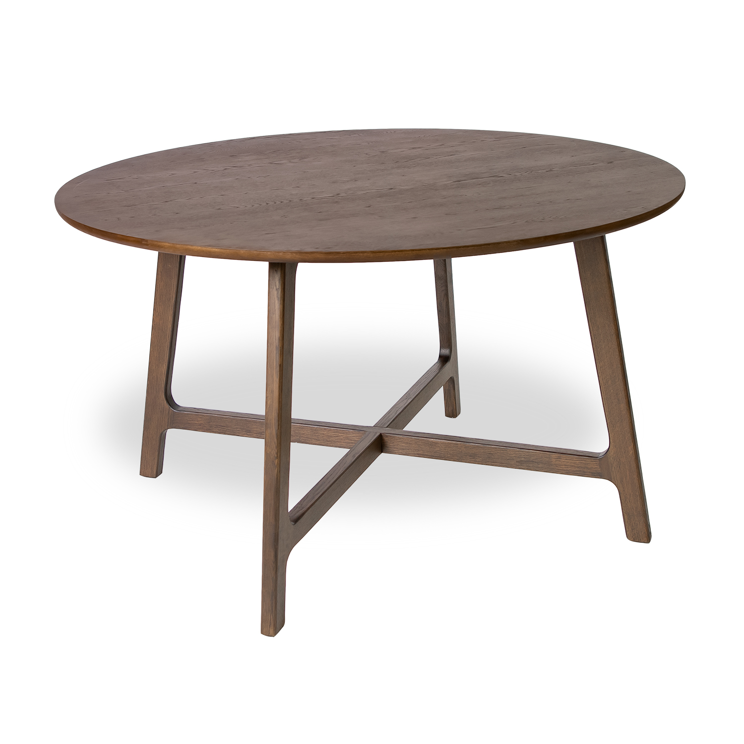 [0] => Bring a classic look and enduring style to your dining room with the Enigma Round Dining Table. Made with a brown oak finish, Enigma features a smooth circular tabletop and a masterfully crafted trestle-style base with X-shaped beams. With a compact circumference of 51", the Enigma Round Dining Table is ideal for smaller spaces and cozier meals of up to four diners.