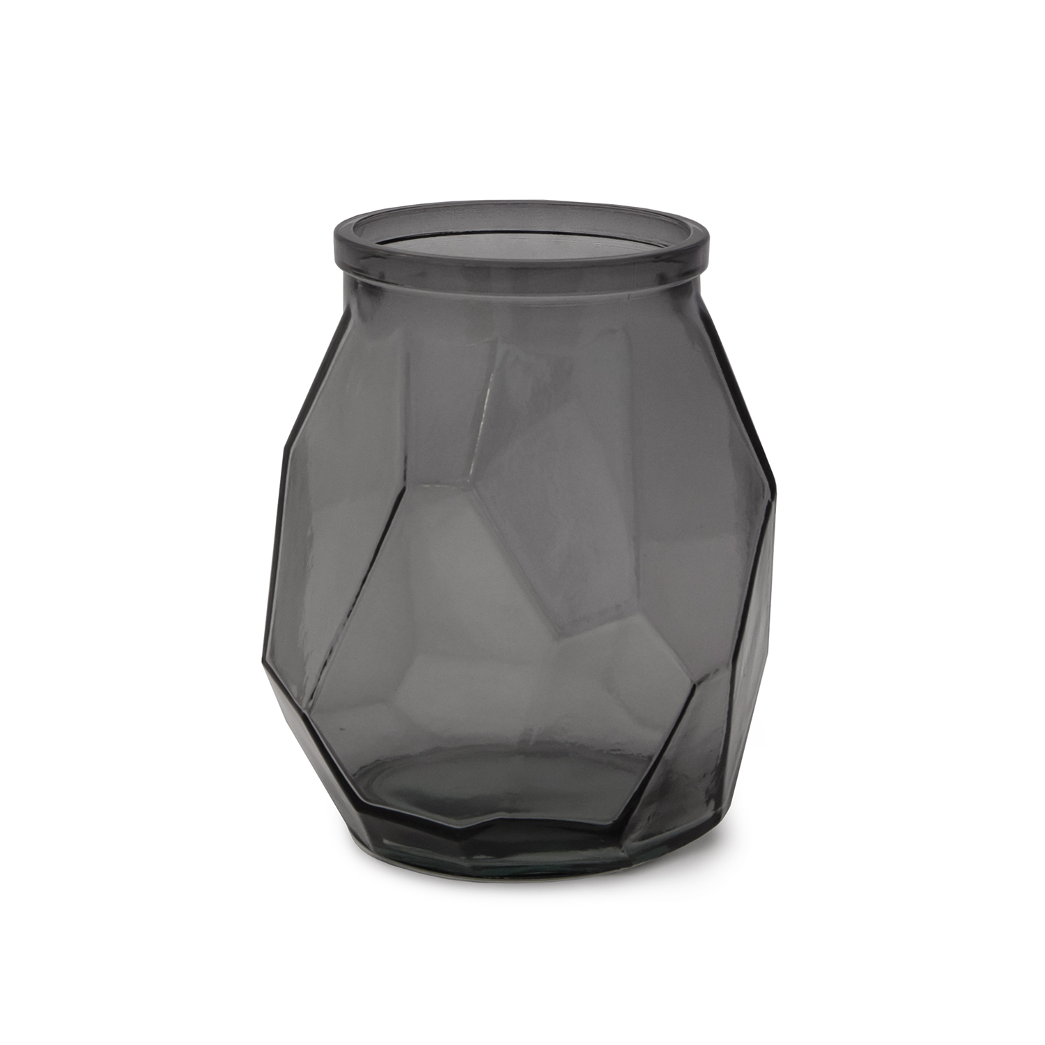 The Facet Vase, made in Italy, is made from entirely recycled coated glass, merging a respect for the environment with refined style. With a wide-neck and multi-faceted smoke grey surface, this vase is functional and decorative.