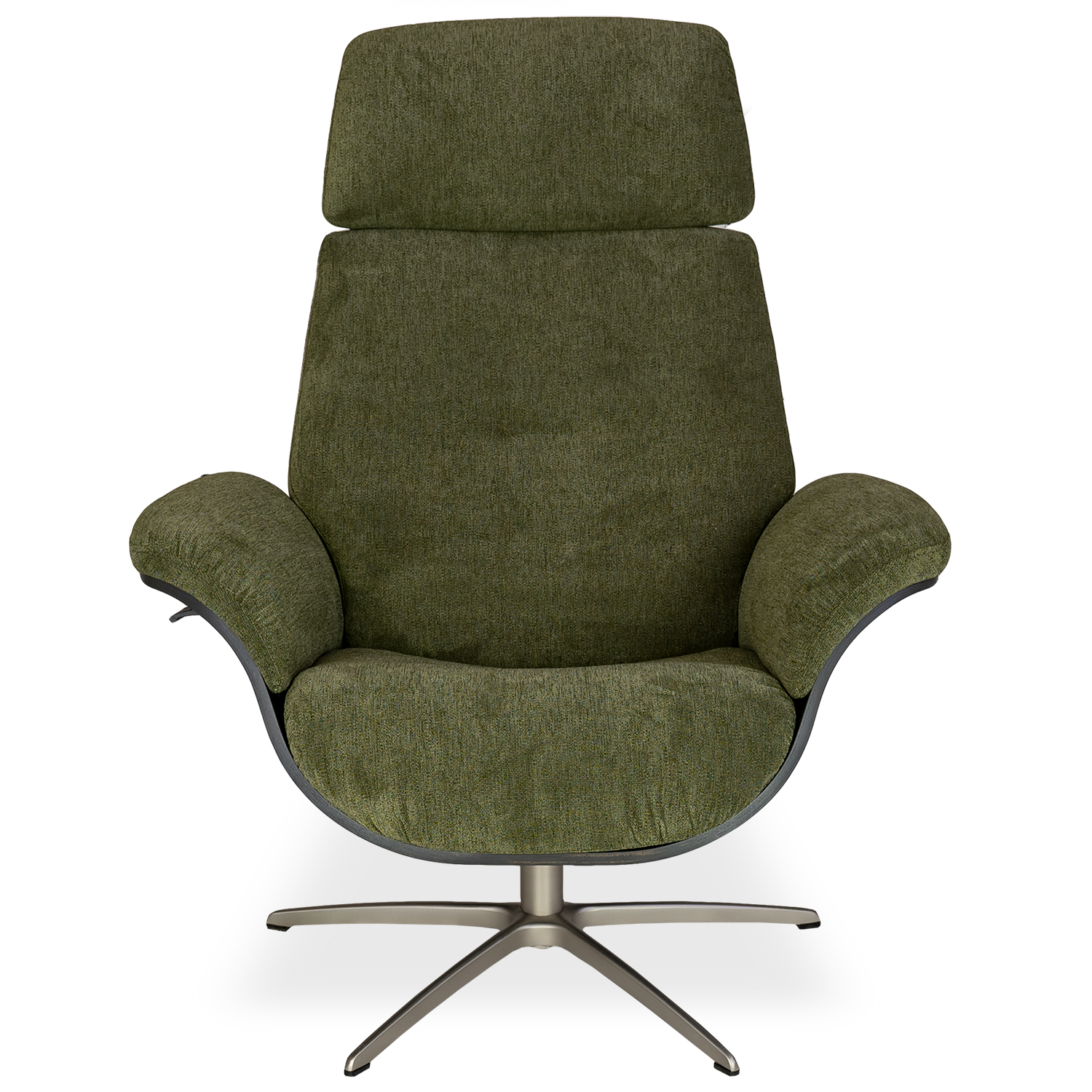 Designed in Norway, the Falcon Chair and Ottoman feature a form reminiscent of the classic Eames chair and ottoman, with rounded lines and curved wood framing for optimal style and comfort. Falcon is upholstered in forest green Safir fabric and supported by a wooden shell with a charcoal finish. The brushed steel star base is equipped with a mechanism that lets the chair swivel 360 degrees, and a lever under the right armrest allows you to recline the chair to your perfect angle. Falcon's headrest is also manually adjustable, letting you customize it to your preferred height. Both timeless and modern, the Falcon Chair and Ottoman will bring you top-tier relaxation while making an iconic statement.