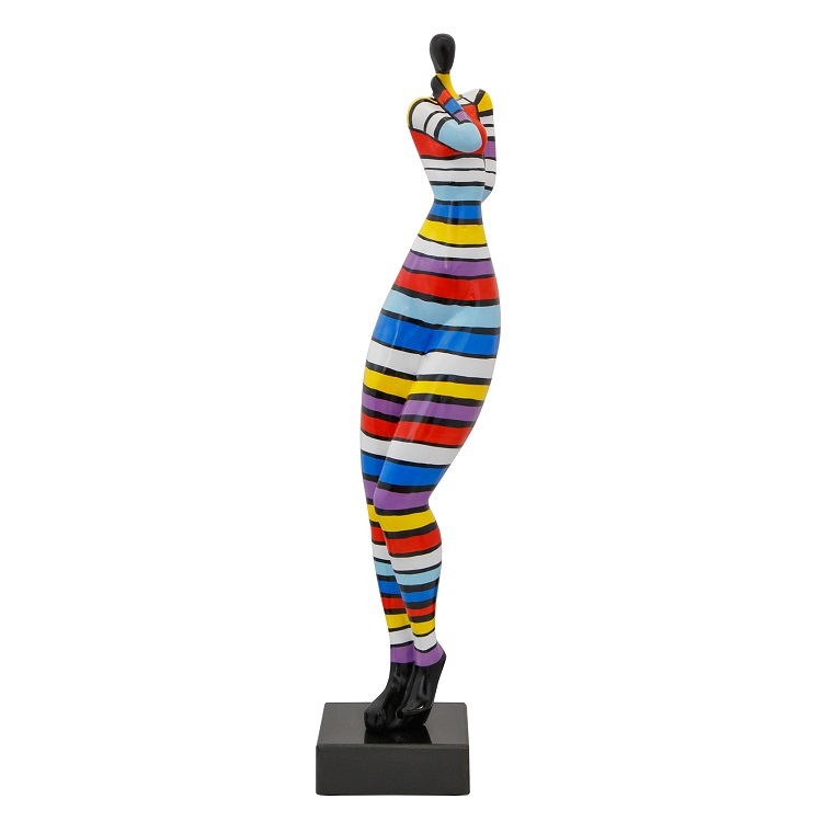 [0] => The Fashion Woman sculpture poses with finesse and attitude in her rainbow attire. Smooth, colorful, and completely unique, Fashion Woman brings stand-out stripes and color to your home or office space.