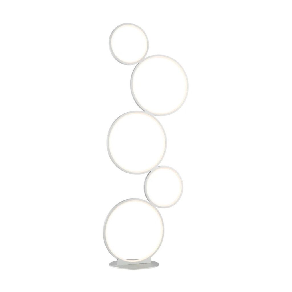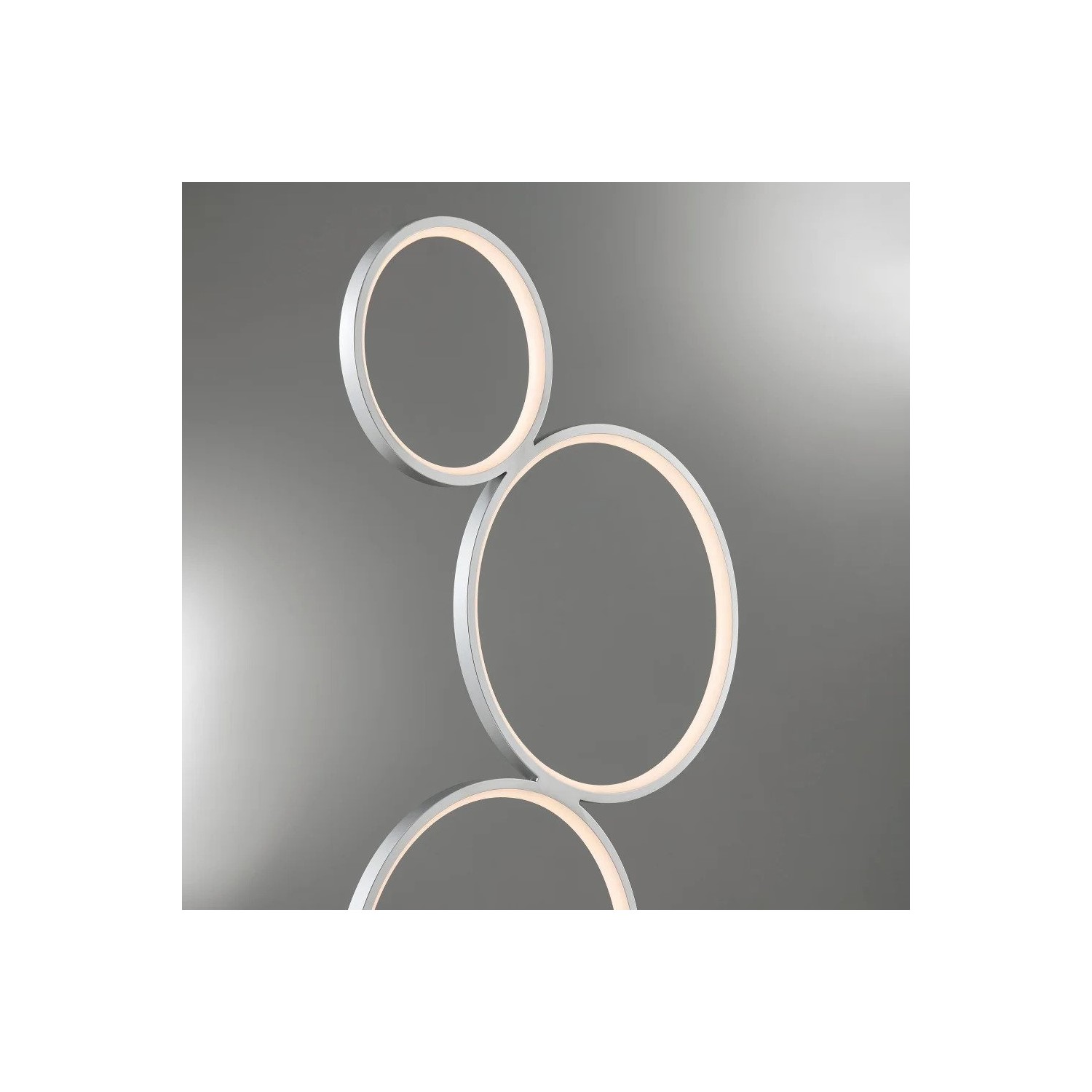 Add a jaunty and playful source of light to your interior with the Felicia Floor Lamp, shown here in a silver finish. This lamp is composed of five stacked circles that emanate a warm glow from inset 24W LED strips, and includes a foot switch. Whether you place it in your bedroom, living room, or office, the Felicia will lighten your mood whenever you look at it.
