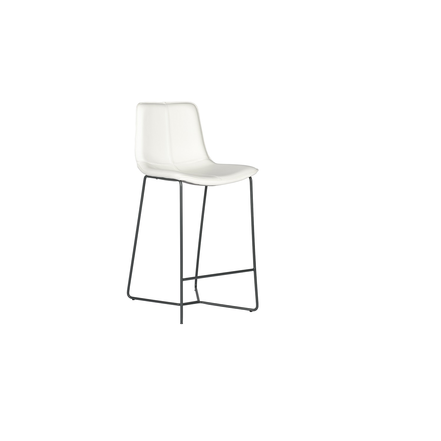 [0] => The Filu Counter Stool, available with white leather upholstery, has anthracite legs that taper out and meet at the base in a curved geometric design. The low back smoothly curves into a wide seat, and an attractive double stitch matches the white leather. This counter stool has a minimalist, urban vibe.