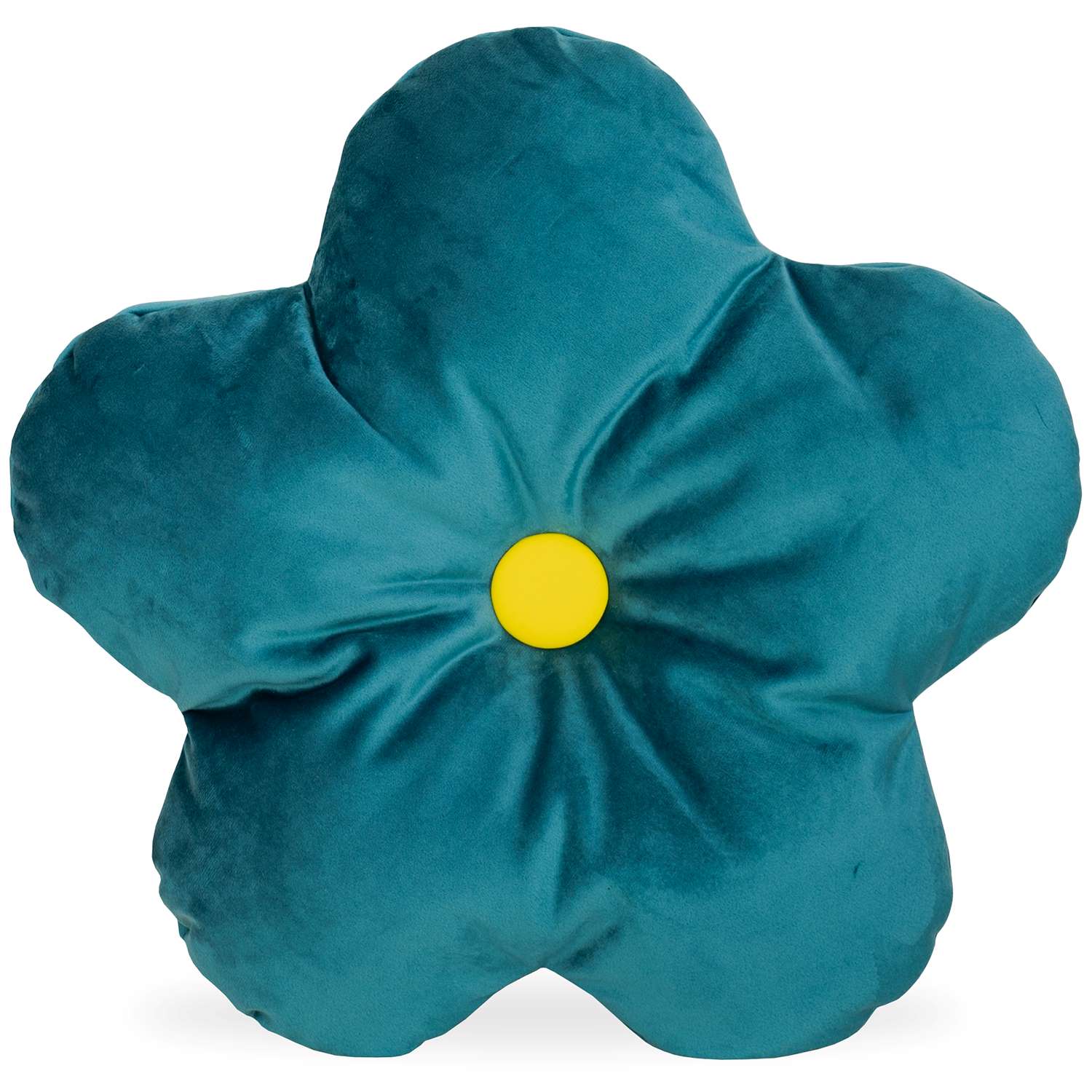 Made in Italy, the Flower Pillow features a bright color scheme and a whimsical shape that will add a touch of fun to any interior. With upholstery in stain-resistant teal microfiber and a contrasting center accent in yellow fabric, this accessory is perfect paired with its companion Flower Pillows to add a pop of personality to a sofa, armchair, or bed.