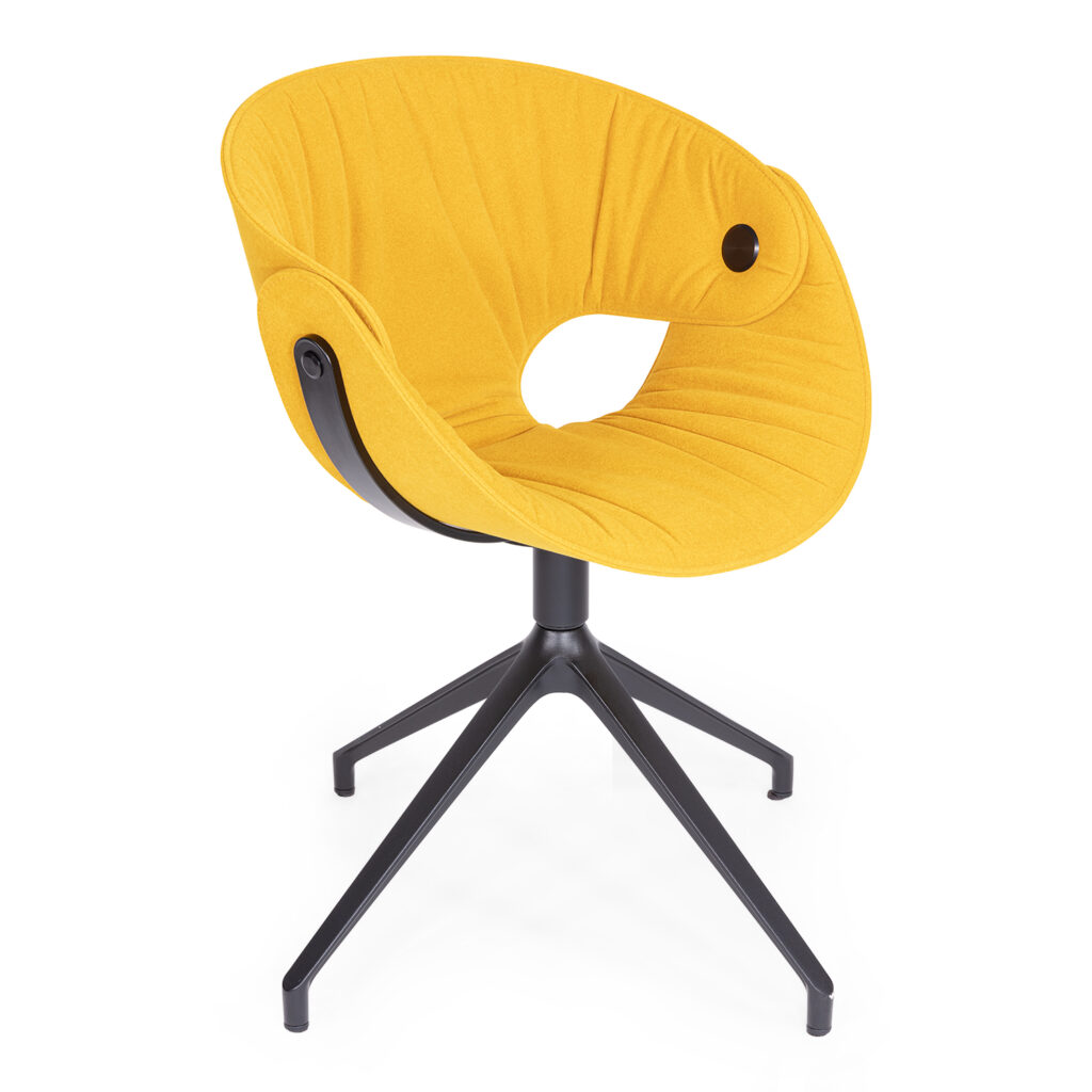 [0] => fl@t soft armchair w/swivel, shell and interior soft seat in nordic 4nh mustard fabric with black base. design by martin ballendat