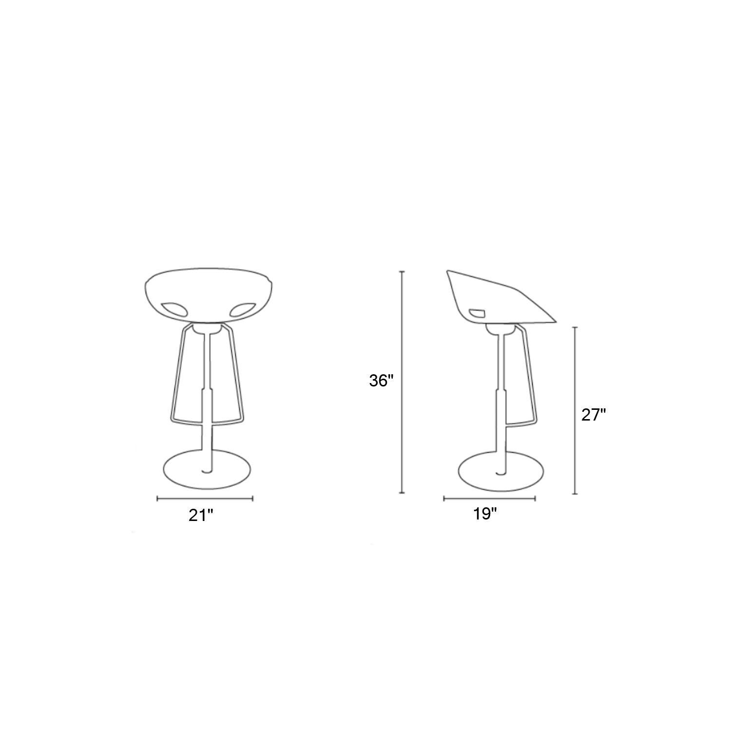 The Tonon Fl@t Counter Stool, available in Nordic mustard fabric with black coated aluminum legs, is not one for blending into the background. Soft organic shapes fold together to create a comfortable shell that contrasts with the black steel fixings and the swivel base. Whether referred to as art, a conversation-starter, or chair, Fl@t is a unique piece that will bring a contemporary, futuristic design wherever it goes.