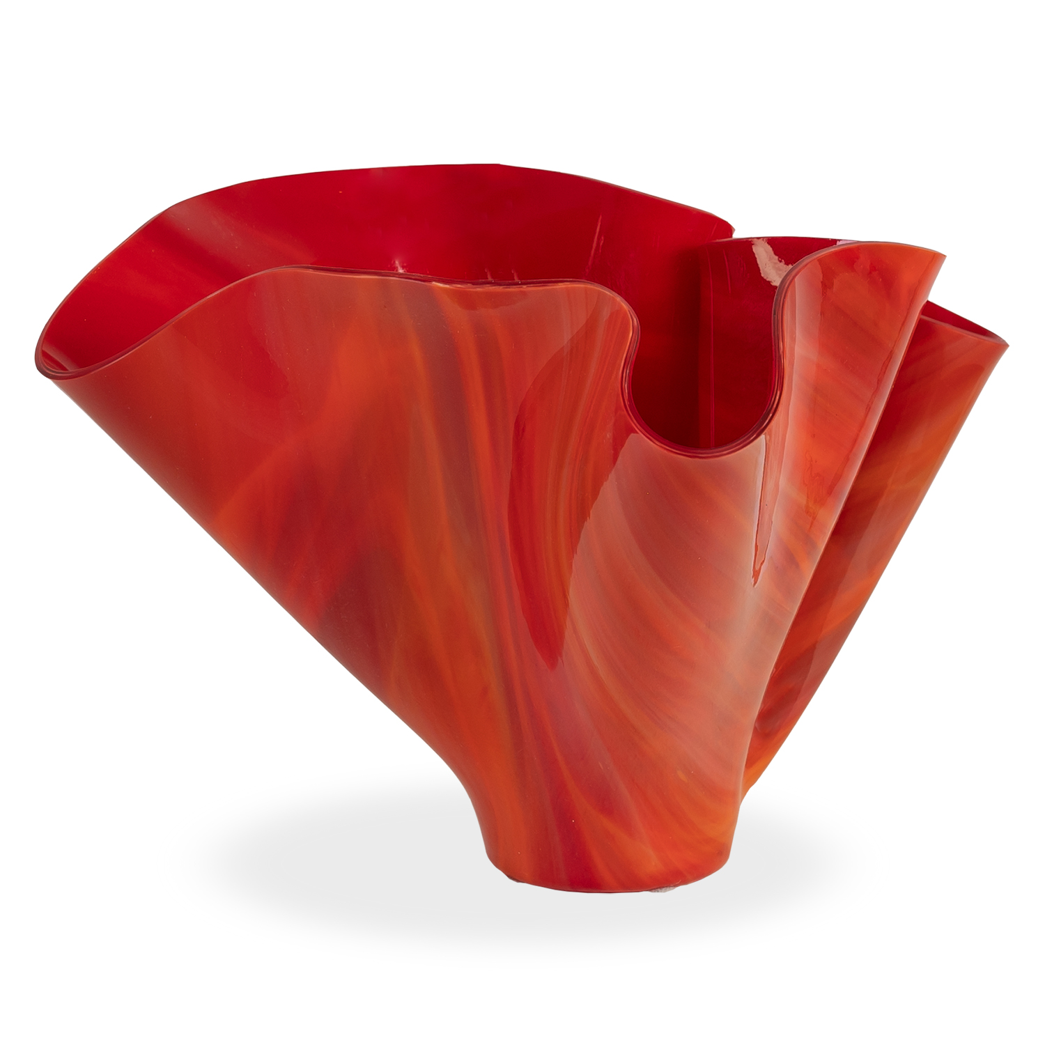 [0] => folded glass vase red shades swirl 8" x 7" h