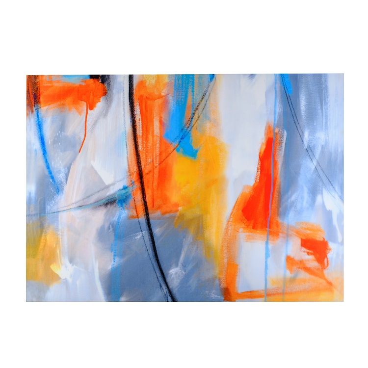 The Form II wall art combines hazy abstract shapes with bright pops of color, bringing oranges, greys, and blues to your living space.