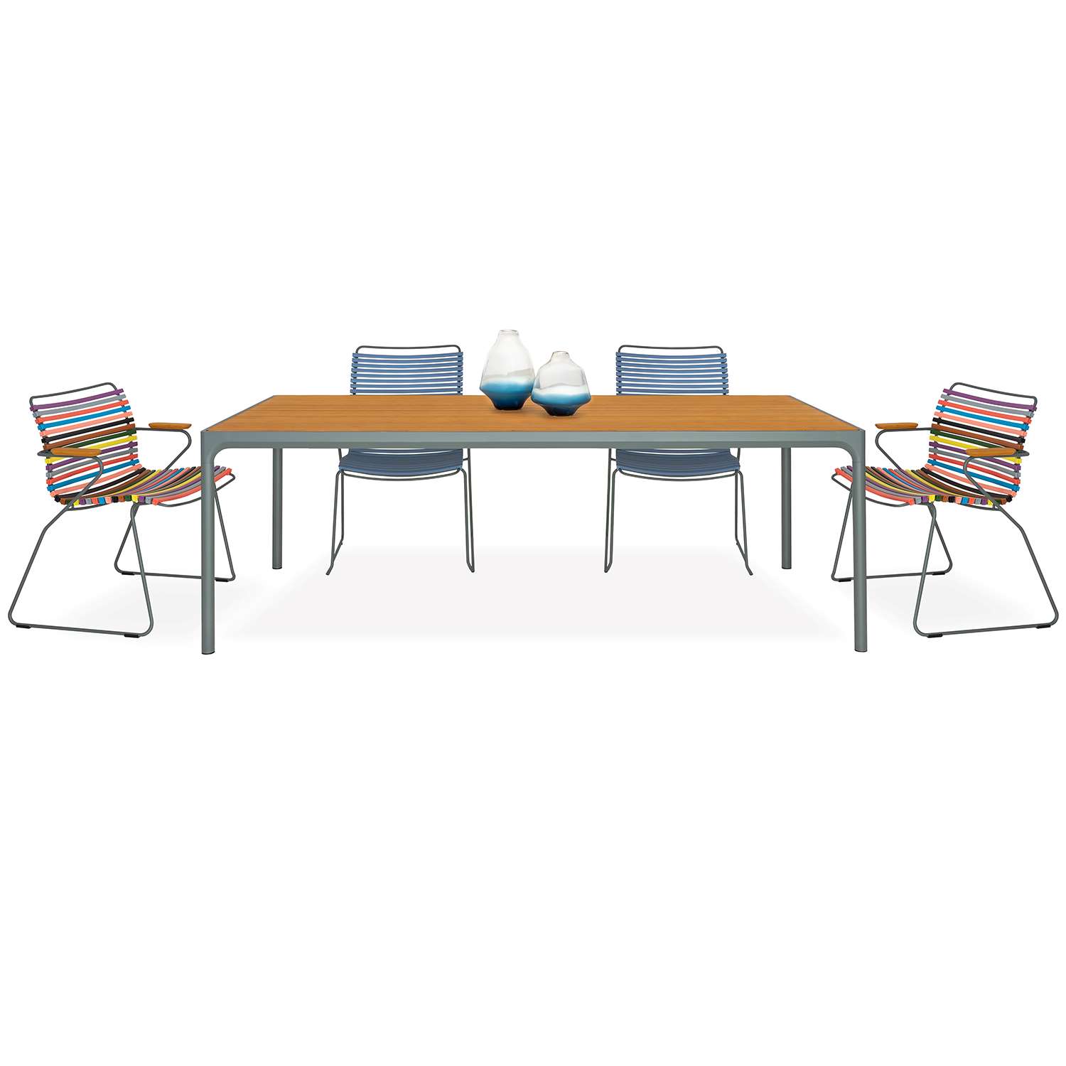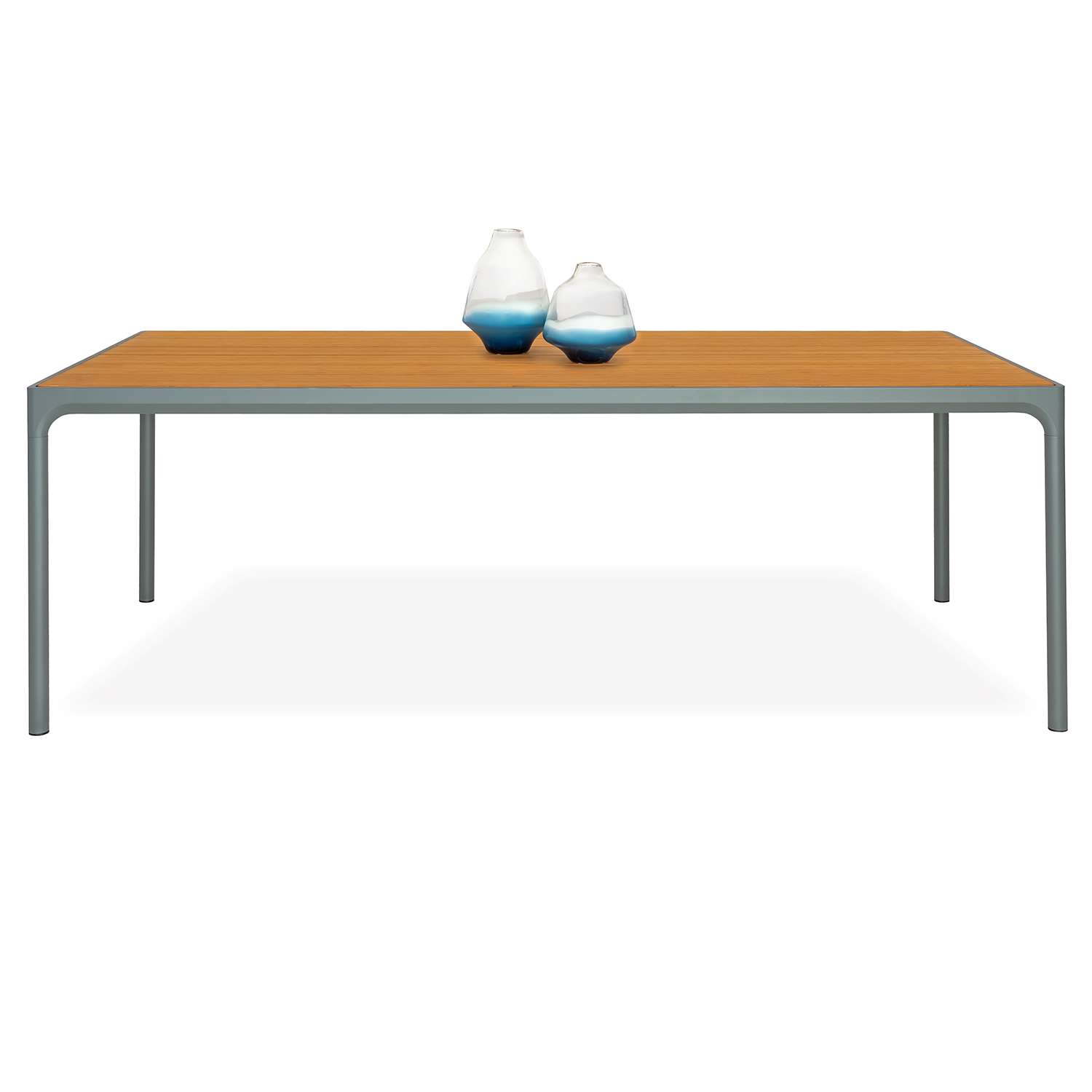 [0] => Elevate your patio dining experience with the Four Dining Table, which features a classic, streamlined form perfect for any type of design environment. Suitable for use indoors and out, Four features a grey powder-coated aluminum frame and bamboo wood slats that add warmth. The horizontal lines of the textured tabletop contrast with the smooth, vertical lines of the frame, adding intrigue while maintaining a curated look. Pair Four with the Click dining chairs to create a coordinated outdoor dining space.