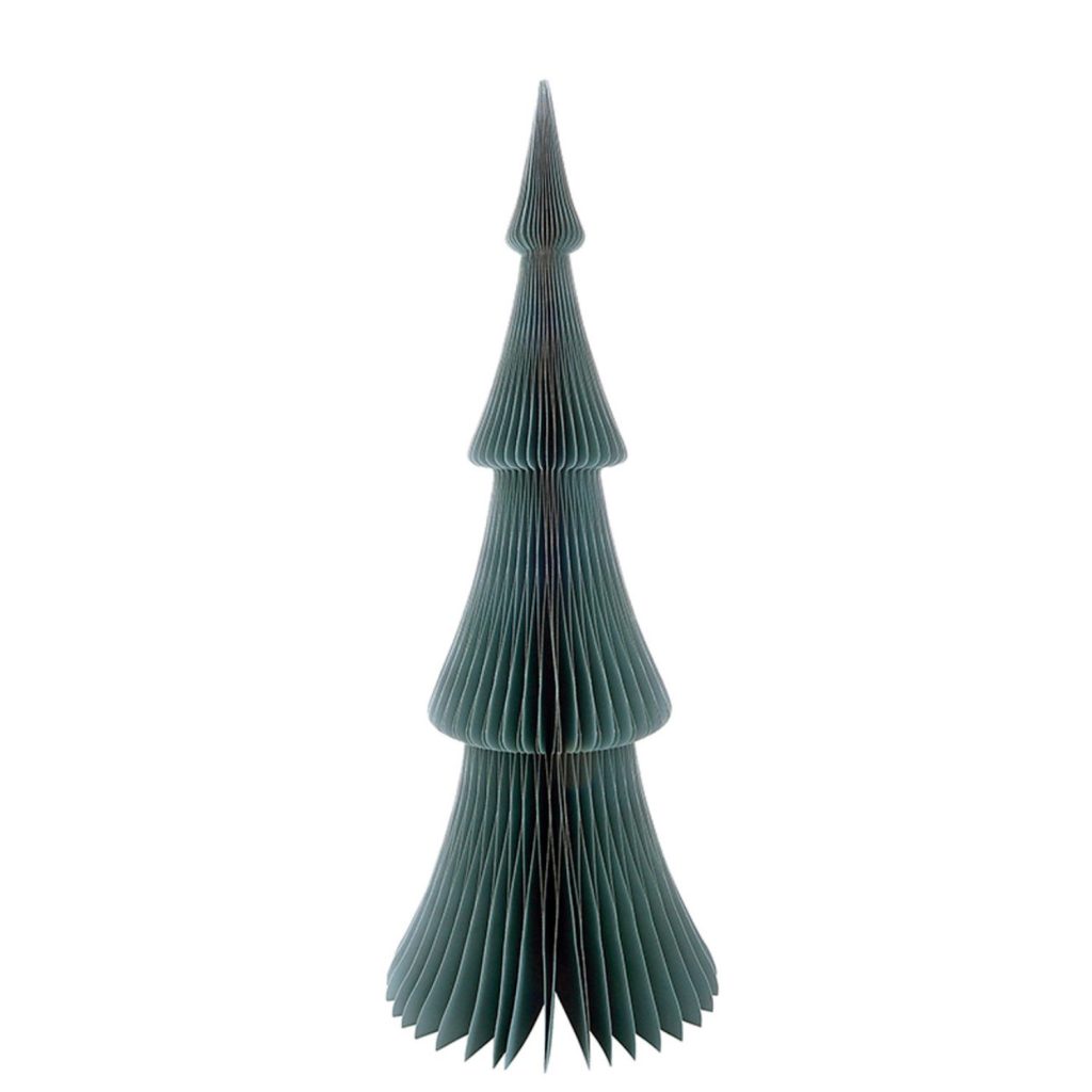 This 24-inch Fraser fir blue paper tree adds a simple, modern touch to holiday decorating. Its honeycomb design opens into a full, sculptural shape that works well next to a fireplace, or as a tabletop accent. Built-in magnets make it easy to assemble, fold, and store away. Mix and match this tree with others of its kind for an easy way to add color and texture to any holiday display.